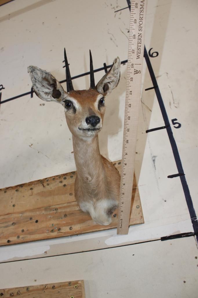 Older STEENBOK Shoulder Mount in Fair Condition. It has some ear splitting. TAXIDERMY
