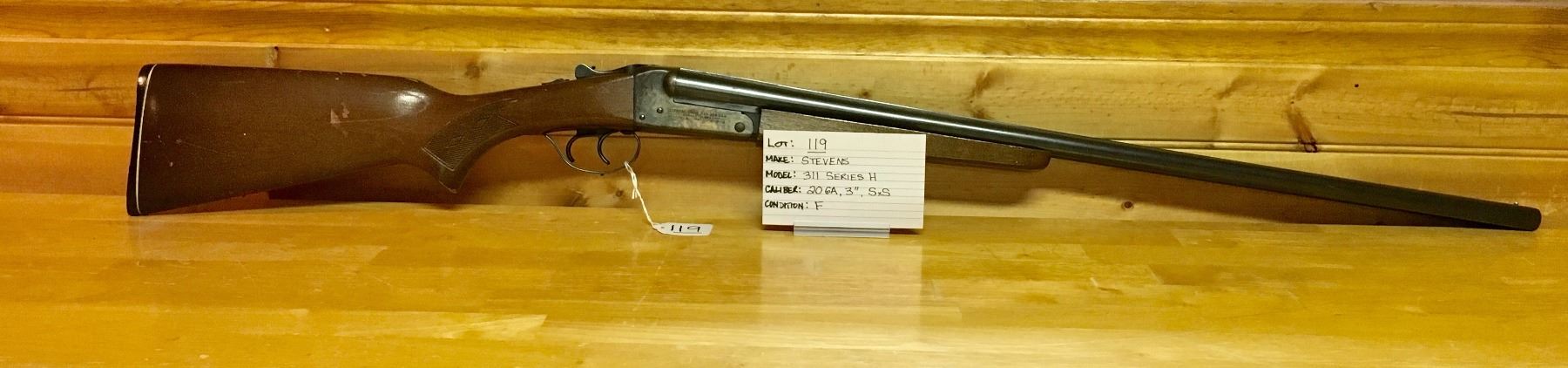 LOT: 119 MAKE: STEVENS MODEL: 311 SERIES H CALIBER: 20 GA, 3" , SxS CONDITION: F S/N: B574176