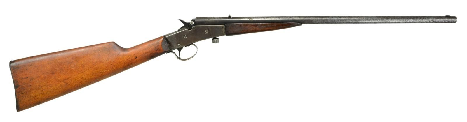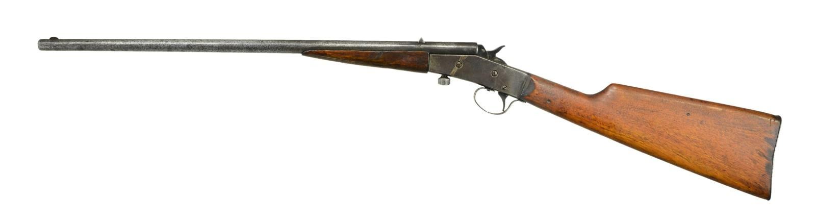 Cal. 22 LR. NSN. Bbl. 20". Open sights. Hardwood stock set w/ steel buttplate. CONDITION: bbl. has faint traces of blue in protected areas; balance gray brown patina w/ prior pitting & peppery oxidation. Receiver has gray brown appearance w/ pitting & varnish overspray. Sanded & refinished wood has cracks & gouges. Fair worn bore w/ pitting. (23-942/MD). CURIO. $50-100.