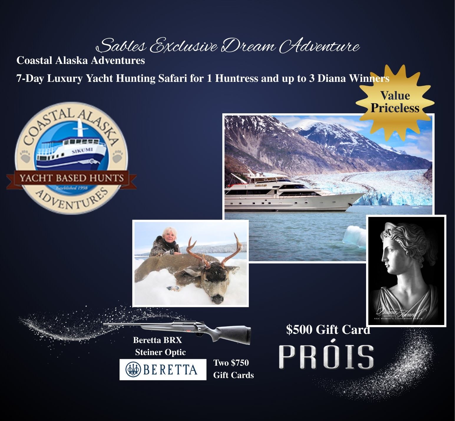 This exclusive adventure offers one distinguished huntress the opportunity to join up to three Diana Award winners on a seven-day luxury yacht-based hunting safari in Southeast Alaska, hosted by Chelsea McCarthy of Coastal Alaska Adventures, one of Alaska’s premier outfitters.