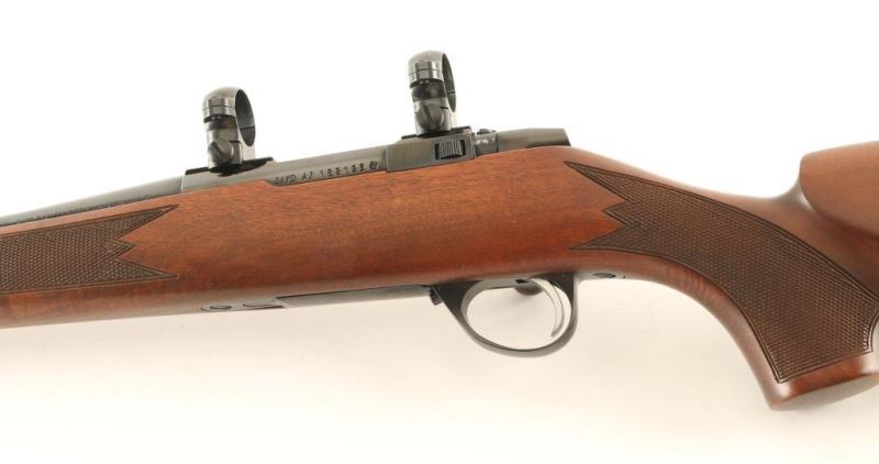 Finnish made bolt action sporting rifle chambered in .223 Remington, circa 1980's. Imported by Stoeger Inc. of N.J. with import marks on the underside of the barrel. Features a blued finish. 22 3/16" barrel with no provisions for sights, installed scope rings, serrated trigger, manual safety, internal box magazine with hinged floorplate and checkered Monte Carlo style high wood stock with swivel studs, right handed palm swell & red factory recoil pad. Rifle exhibits approximately 98%+ of it's original finish showing some minor wear on the rear of the bolt. Action is smooth, bore is pristine and wood stock is fine. Condition is near NRA new. ***Modern Firearm***