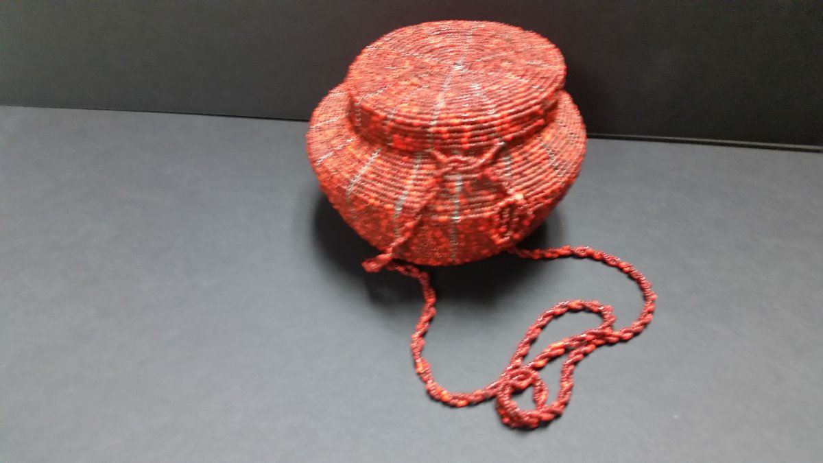 Red Beaded Pocket Book Basket 5x3.5 tall
