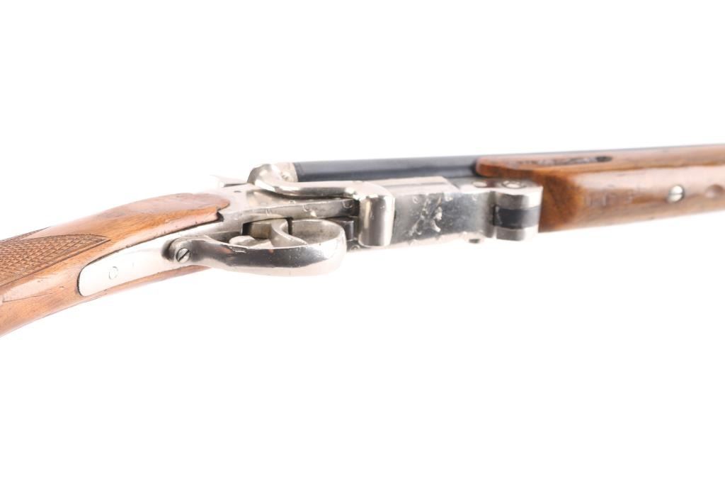 GOOD: Some minor replacement parts; metal smoothly rusted or lightly pitted in places, cleaned or re-blued; principal letters, numerals and design on metal legible; wood refinished, scratched bruised or minor cracks repaired; in good working order.