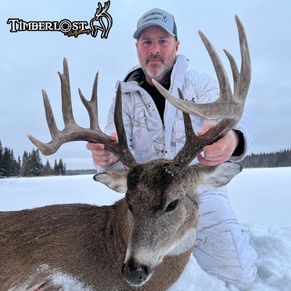 Saskatchewan, Canada: Timberlost Outfitters Trophy Whitetail Hunt – Timberlost Outfitting offers fully guided Saskatchewan, Canada Trophy Whitetail Deer Hunting due to the good genetics, perfect habitat, strict trophy management and few hunters, offering great opportunities to get a mature deer. Firearm hunts and muzzleloader hunts are offered on a limited basis to maintain a low pressure hunting environment. This is a trophy whitetail hunt managed for big bucks- If any mainframe 10 point or more buck is shot that does not gross 150 inches there will be a $1500 fine in order to promote world class bucks. We only take 50 deer hunters a year on 130,000 acres, so let this be the place where you take the biggest whitetail buck of your life. The hunts are 5.5 days. Observers can be included for $1,500.