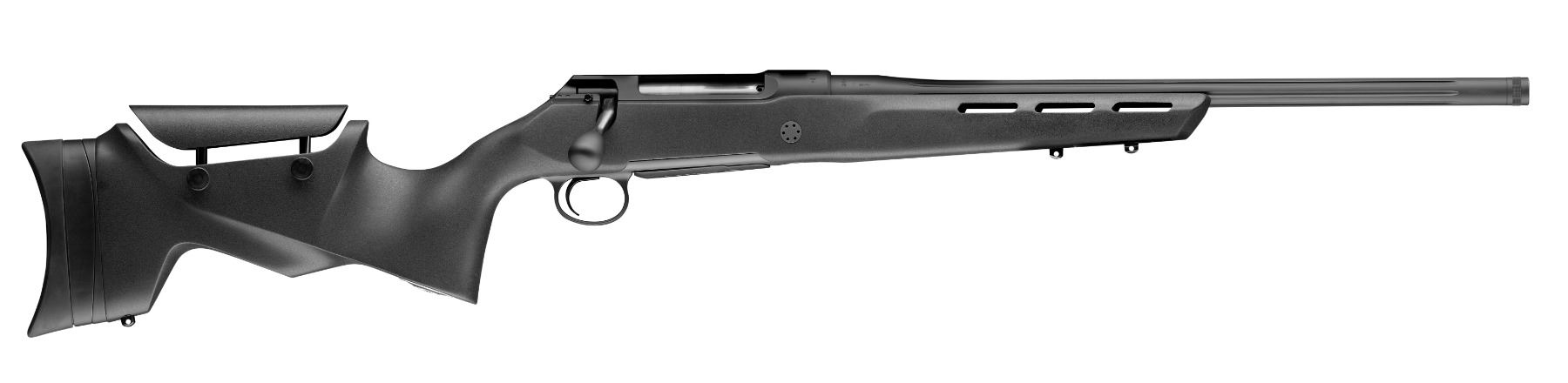 Sauer 100 Pantera .300 Win. Mag.; CERAKOTE coating on barrel and action; Tactical cone alloy bolt handle; EVER REST action bedding; Trigger adjustable from 2.2 – 4.2 lbs; Double-stack magazine; 5+1 round capacity in standard calibers; 4+1 round capacity in mini and magnum calibers; Suitable for the SAUER HEXALOCK mount; Bipod adapter at the forend; Muzzle thread 5/8X24 as standard; Taper: 0.75”; Surface barrel and action: CERAKOTE “Black Recon”.