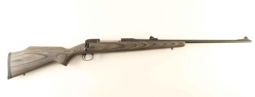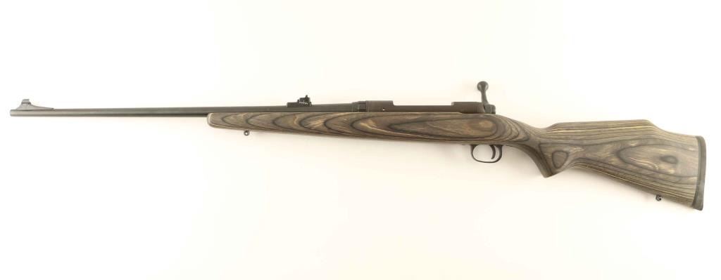 Bolt action rifle. Blued finish, green wood stock with rubber recoil pad. Adjustable rear sights, and sling swivel studs attached. Receiver tapped for scope mount. Bore is excellent, but a little dirty. Action is tight. Some very minor scratches on wood and metal. NRA condition- Very Good. Modern Firearm.