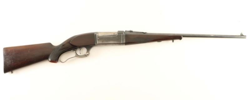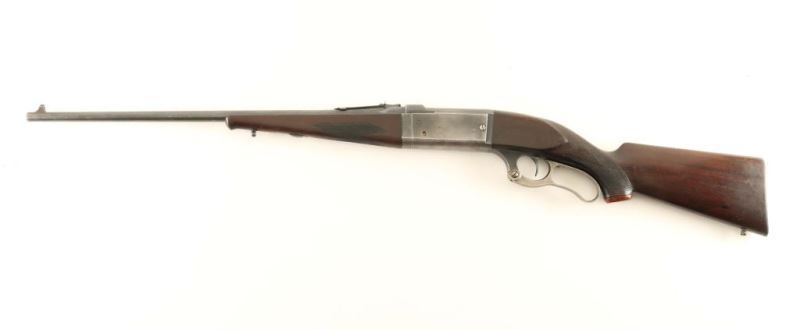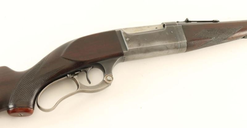 Vintage take-down lever action repeating rifle, circa 1922. Blued finish, 22" barrel, blade front sight, adjustable rear sporting sight, integral rotary magazine w/ round counter, cocked indicator, drilled & tapped upper tang, serrated trigger, curved case hardened lever, sling swivels, checkered walnut forend and pistol grip shoulder stock w/ red grip cap & serrated metal buttplate. Rifle exhibits approximately 40% of it's thinned blued finish showing honest wear. The lever displays good case colors. Action is smooth, bore is excellent and the wood stocks are good+ with blemishes & a filled in hole on the forend. Condition is good to very good. ***C&R Firearm***