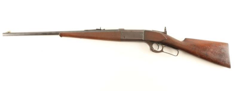 Vintage lever action repeating rifle chambered in .30-30 Winchester, manufactured in 1907. Features a blued finish, 22" tapered barrel, German silver blade front sight, semi-buckhorn rear sporting sight, adjustable aperture tang sight, internal rotary magazine with brass spool/round counter, cocked indicator on the bolt, smooth trigger, case hardened lever, sliding safety, smooth walnut schnabel forend and straight grip shoulder stock with factory smooth metal buttplate. Rifle retains some bright bluing in protected areas and exhibits approximately 40% of it's thinned blued finish on the barrel. The received displays a nicely aged brown patina and the lever shows beautiful case hardened colors on it's unexposed portion. Action is smooth, bore is fair showing rust towards the muzzle and the wood stocks are good with scattered finish loss, blemishes & some gouges. Condition is NRA good+++. ***C&R Firearm***