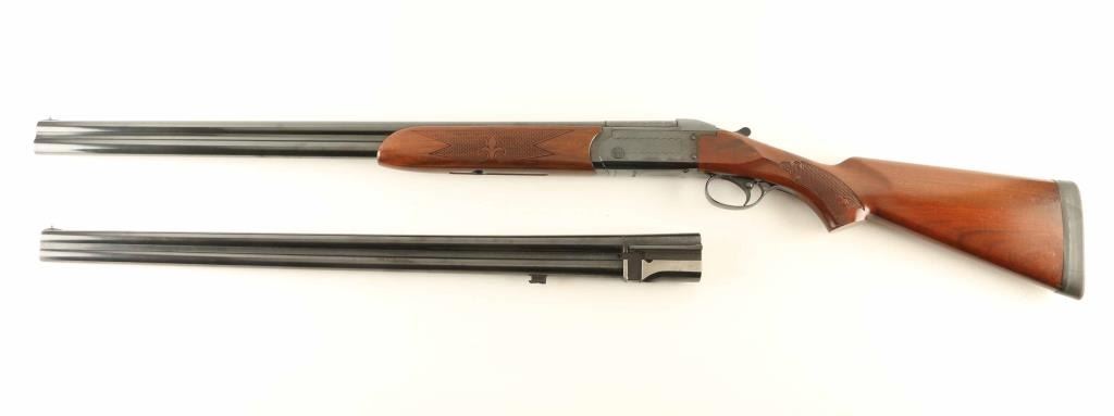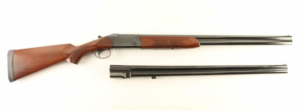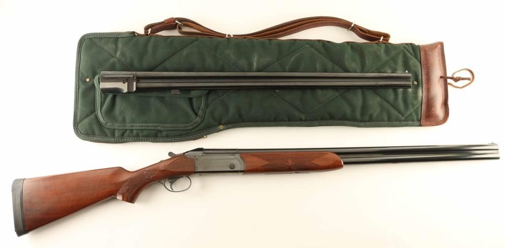 Shotgun. O/U. Made in Finland by Valmet. 28" barrels, no vent rib. 2 3/4" chamber. Extractors. Full/modified choke. Single trigger with barrel selector on the trigger assembly. Thumb safety on tang. Checkered walnut stock, and forearm. Rubber recoil pad, with some chips to the edges. Bores appear excellent/bright, but dirty. Action locks up tight. High polish blued finish is about 98% with some muzzle wear, and minor scratches. Wood is very good with a few minor scratches. Comes with a padded cloth/leather case, and a 20. Ga. 28" barrel. 3" chamber. Bores, and finish are excellent. A very nice set. NRA Condition -Near Excellent. Modern Firearm.
