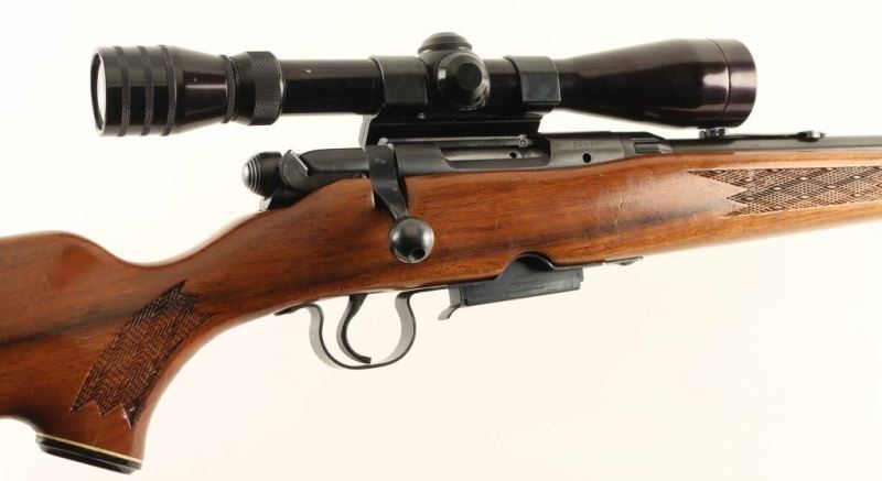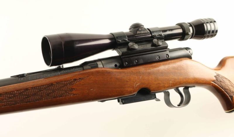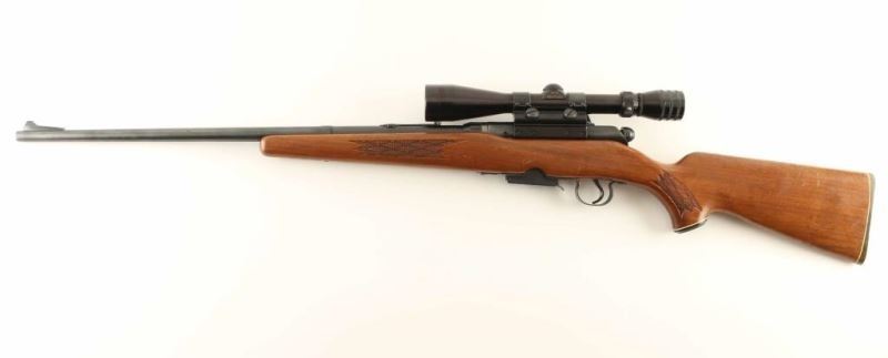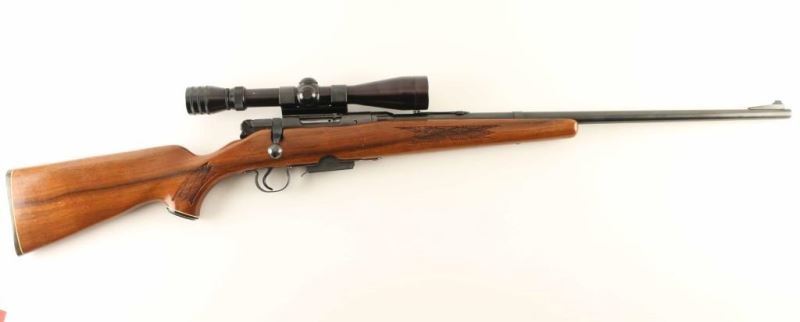 Vintage magazine-fed bolt action sporting rifle features a blued finish, 24” barrel, ramped blade front sight, elevation adjustable rear sporting sight, serrated trigger, stamped steel trigger guard & bottom metal, manual safety on the right side of the receiver, detachable box magazine, semi-pistol grip wood shoulder stock with checkered wrist & forend, serrated plastic buttplate. Bore is very good condition. Retains 95% deep blued finish showing light wear, some bare metal on sharp edges & where bolt body rubs during operation. Stock is very good condition with minor handling marks. Mounts a very good condition Redfield 3-9x scope with duplex reticle, clear view. Includes (1) magazine. Condition is NRA Very Good *** Modern Firearm ***