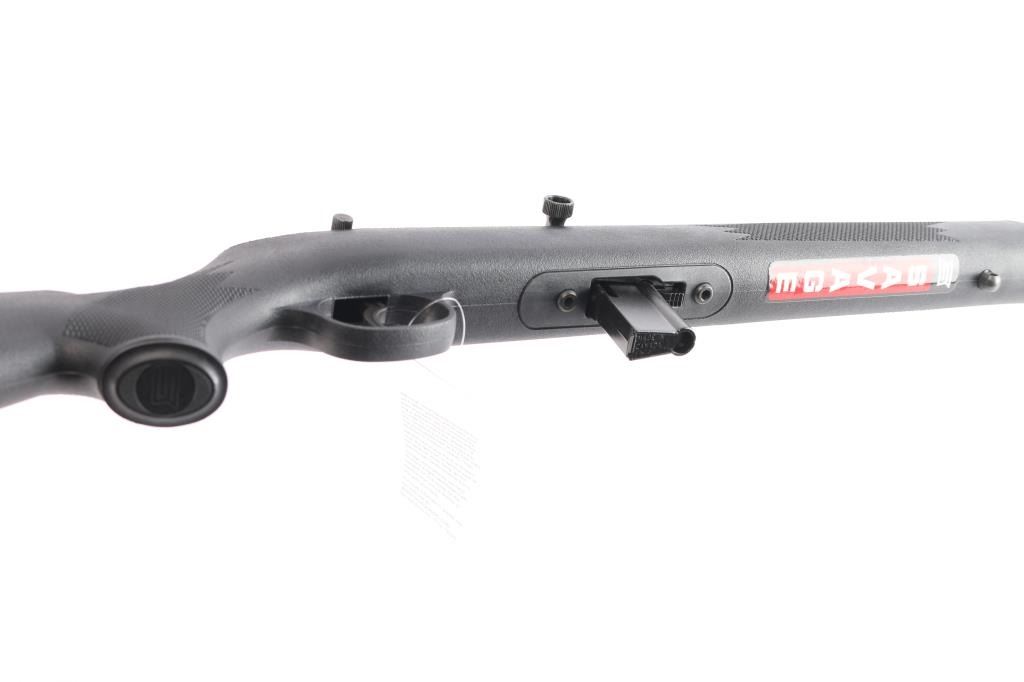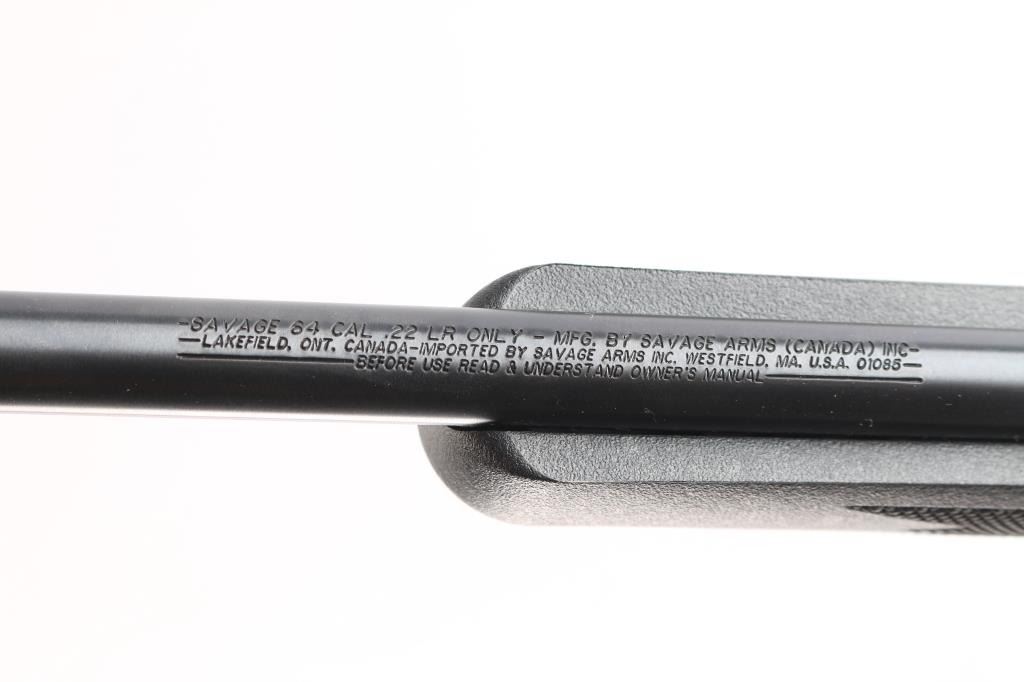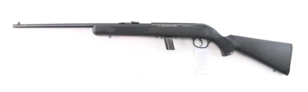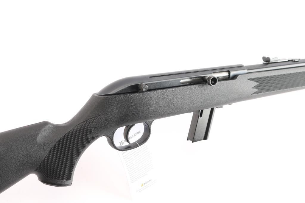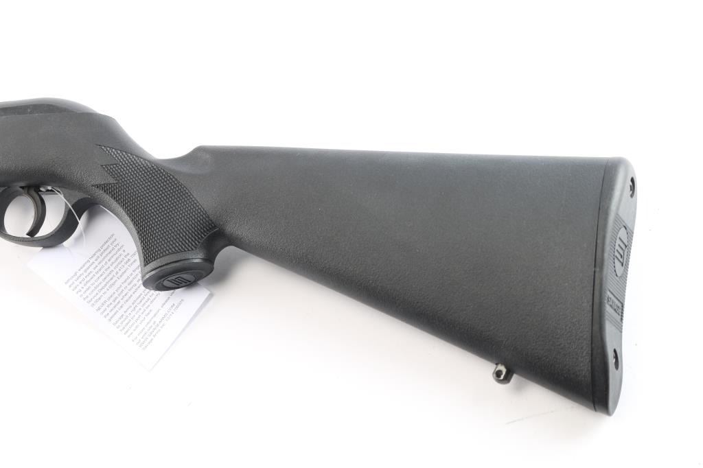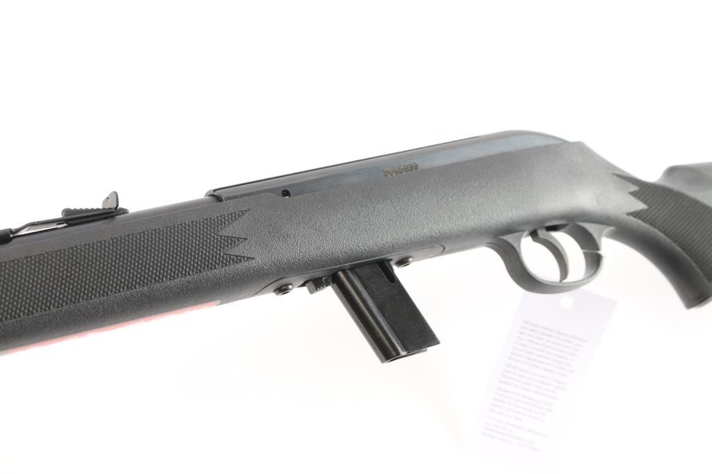 Semi-automatic rifle made in Canada, chambered for .22 LR. Features a blued finish, black polymer stock with molded checkering, 21" barrel, blade front and elevation adjustable rear sights in dovetails, manual bolt hold open, mag release button forward of the mag, sling studs, factory buttplate, manual safety. Bore is very good. Retains 99% finish, with no visible losses. Stock is near pristine. Includes one 10rd magazine, Tasco rifle scope, cable lock and factory box. Condition is NRA perfect. *** Modern Firearm ***
