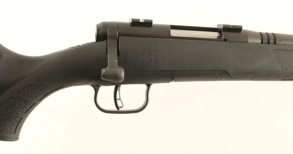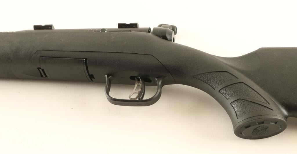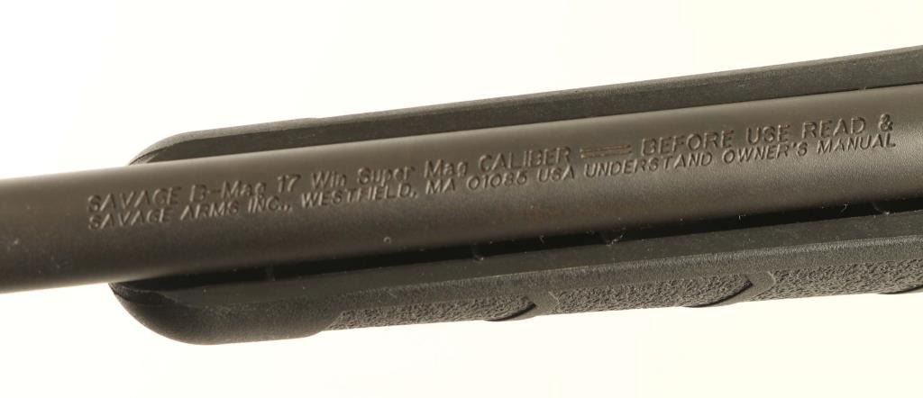 Magazine fed bolt action rimfire rifle chambered in .17 Winchester Super Magnum. Some B-Mag rifle were recalled with issues related to the bolt contour, this rifle fell into that category and was sent back to the factory for the issue to be resolved. Features a matte black finish, tapered 22" carbon steel barrel without provisions for sights, installed two-piece scope base, Accu-trigger, sliding safety on the rear of the receiver, detachable 8 round rotary magazine, and black synthetic semi-pistol grip shoulder stock with integral triggerguard, installed swivel studs, rubber recoil pad & 13 13/16” LOP. Rifle exhibits approximately 95% of its original finish showing some thinning on the barrel and light wear on the bolt handle. Action is sound, the bore is excellent and synthetic stock is fine. Condition is near NRA Excellent. ***Modern Firearm***
