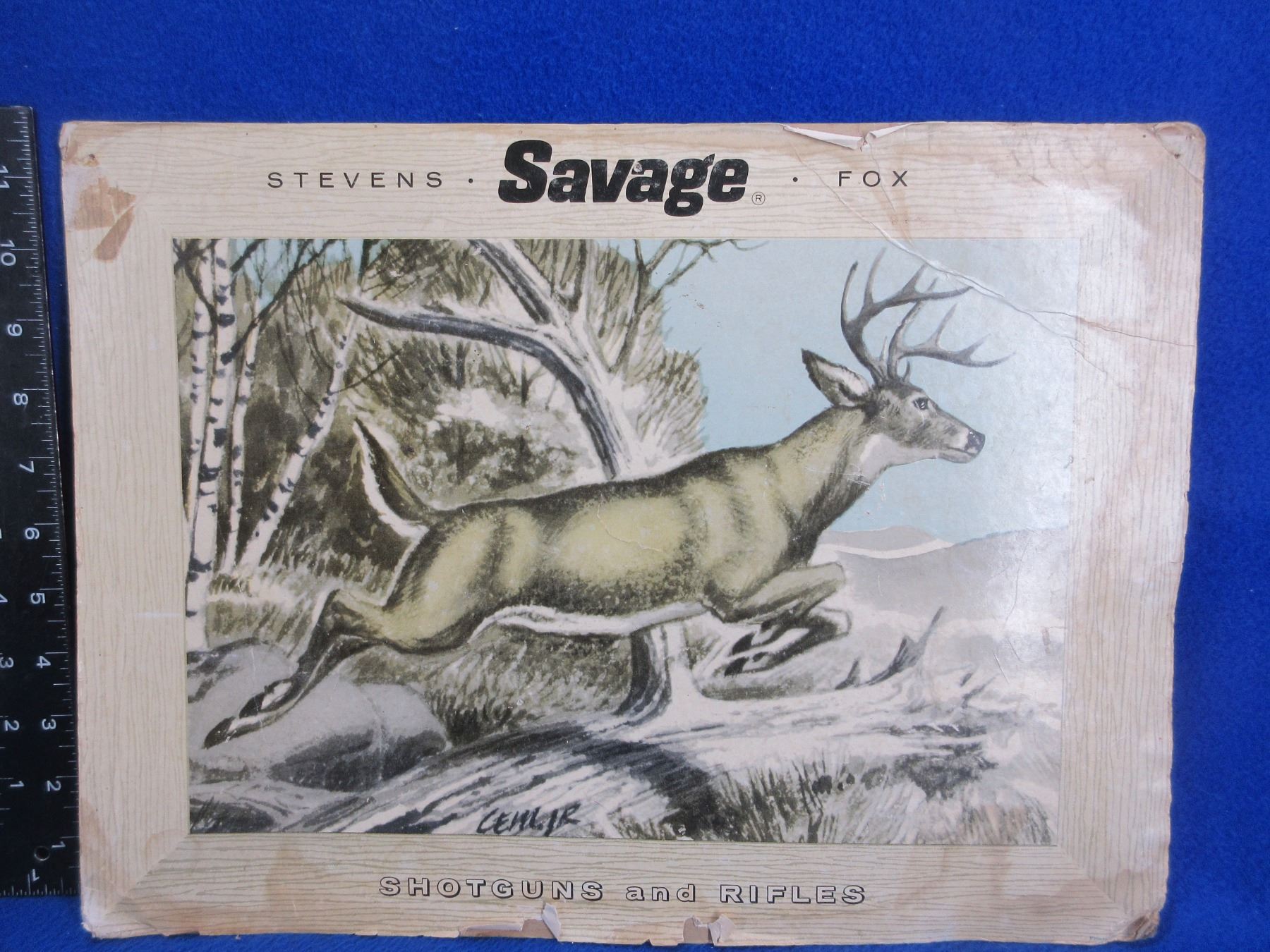 Savage Cardboard Advertising Poster "Shotguns & Rifles" - 16" x 11 3/4" - Has edge and water damage
