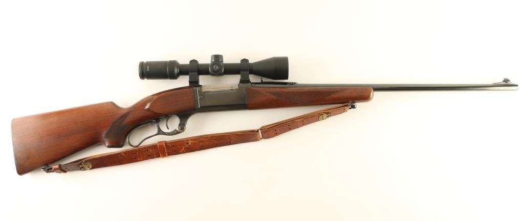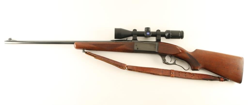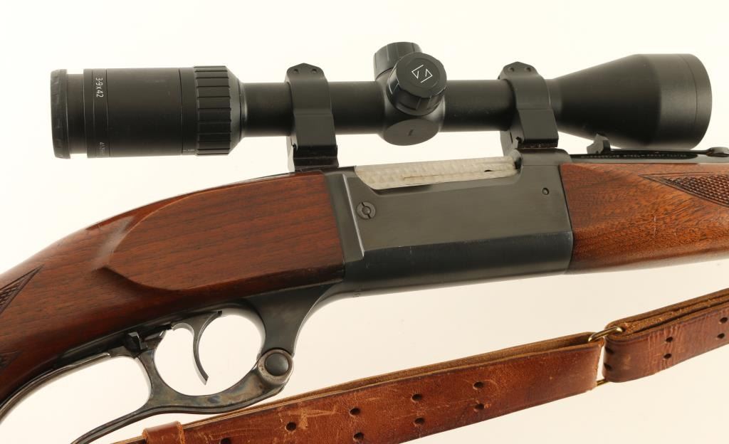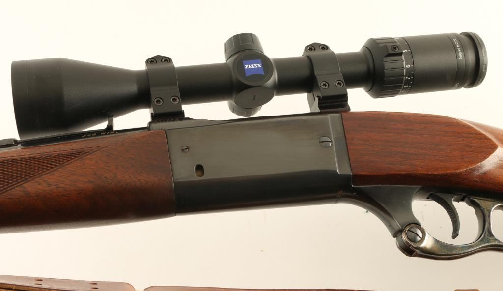 Lever action rifle features blued finish, case color finger lever, two piece wood stock with curved grip, checkering at wrist & forend, flat steel buttplate, 24" barrel, buckhorn style sights, two piece Weaver type bases with rings, fixed rotary magazine with cartridge counter, lever lock safety, cocking indicator, sling swivels. Bore is very good condition. Retains 85% blue,with scratches & scuffs, bare metal on some sharp edges. Finger lever retains bright fiery case color. Wood is very good with dents & scratches, some discoloration near buttplate. Mounts an excellent condition Zeiss 3-9x42mm Terra scope with duplex reticle, clear bright view. Includes poor condition leather sling. Condition is NRA Very Good + *** Modern Firearm ***
