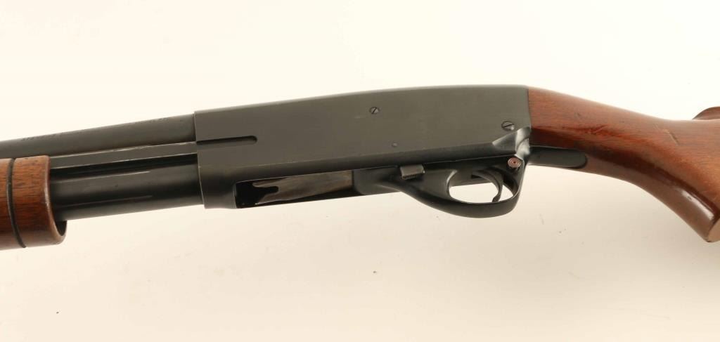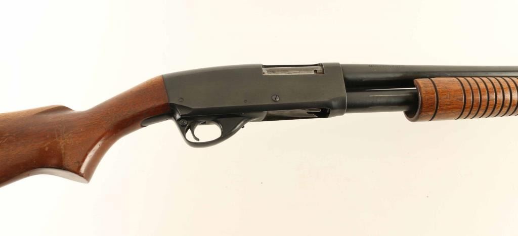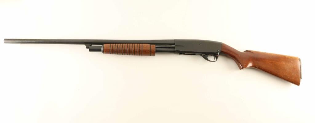 Pump action shotgun accepts 2-3/4" shells. Features 28" plain barrel, choke measures IM, steel front bead, blued finish, wood stock and pump handle, plastic butt plate, manual safety. Bore is very good or better. Retains 80% blue, with bare metal on sharp edges, where action rubs, where scratched, patina beginning to form on receiver and barrel. Wood is good condition with scratches, scrapes, loss of finish. Butt plate is broken, missing material, appears an incorrect replacement. Condition is NRA Good *** Modern Firearm ***