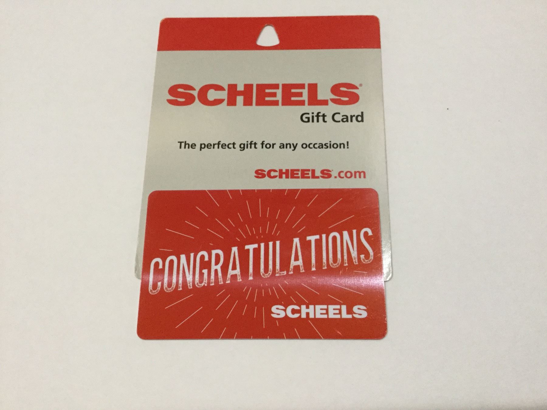 Scheels gift card value of $500. that can be redeemed in store or online at Scheels.com.