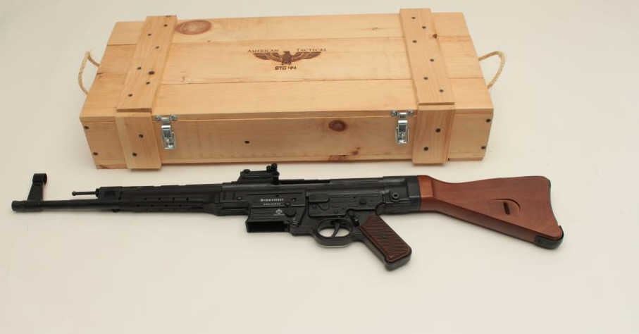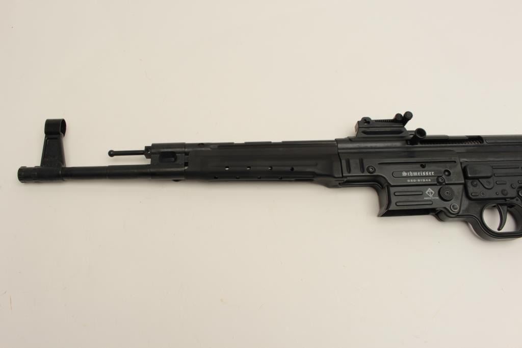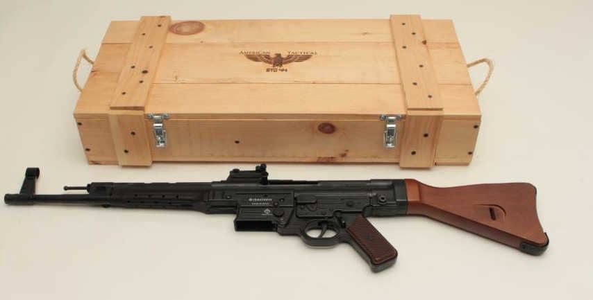 Schmeiser semi-automatic by American Tactical, .22 caliber, mat black finish, one 10 round magazine, in like new condition in wood American Tactical crate; simulates famous WW II German arm. (Modern). Est.: $700-$1,400.