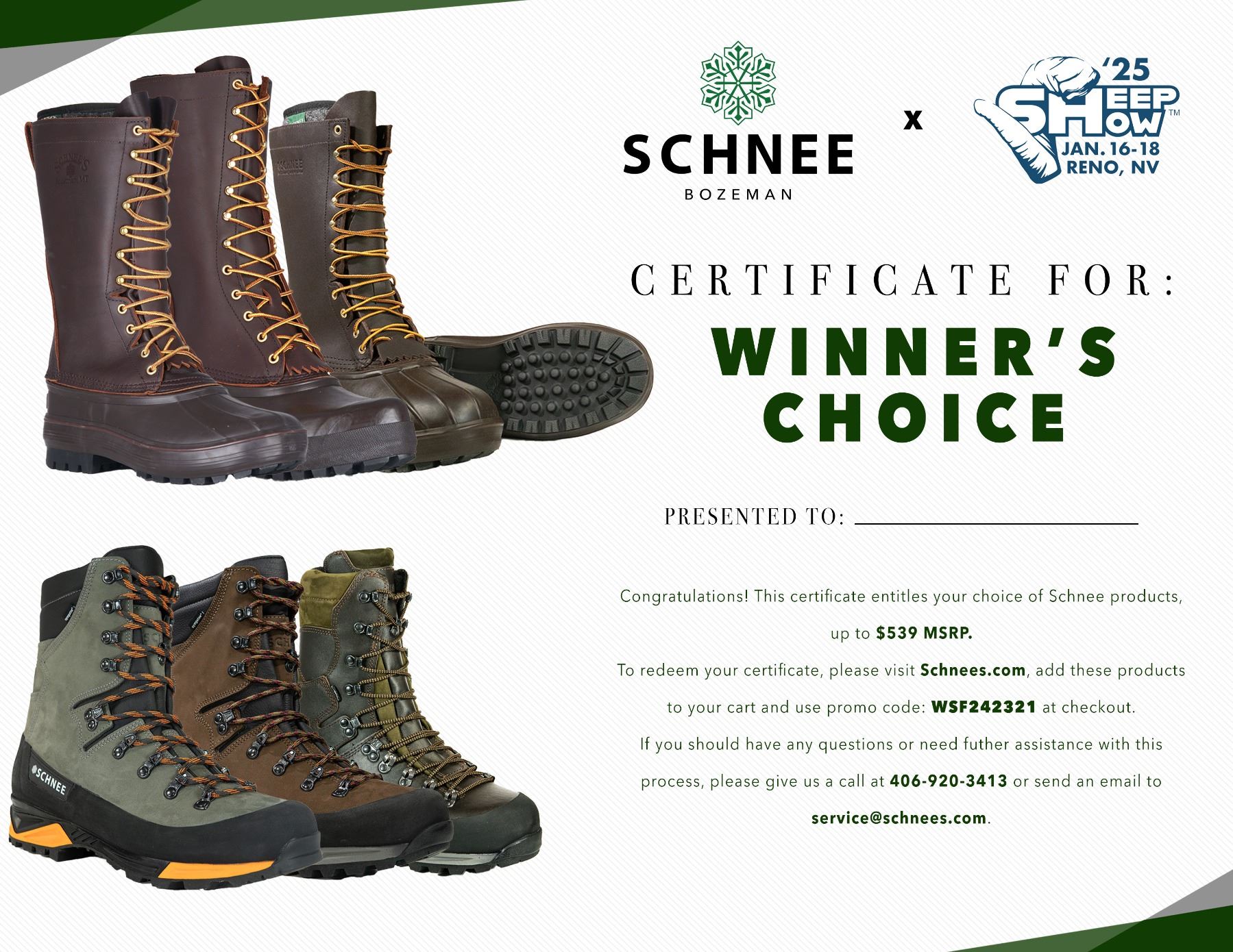 Schnee's Winner's Choice up to $539 Value