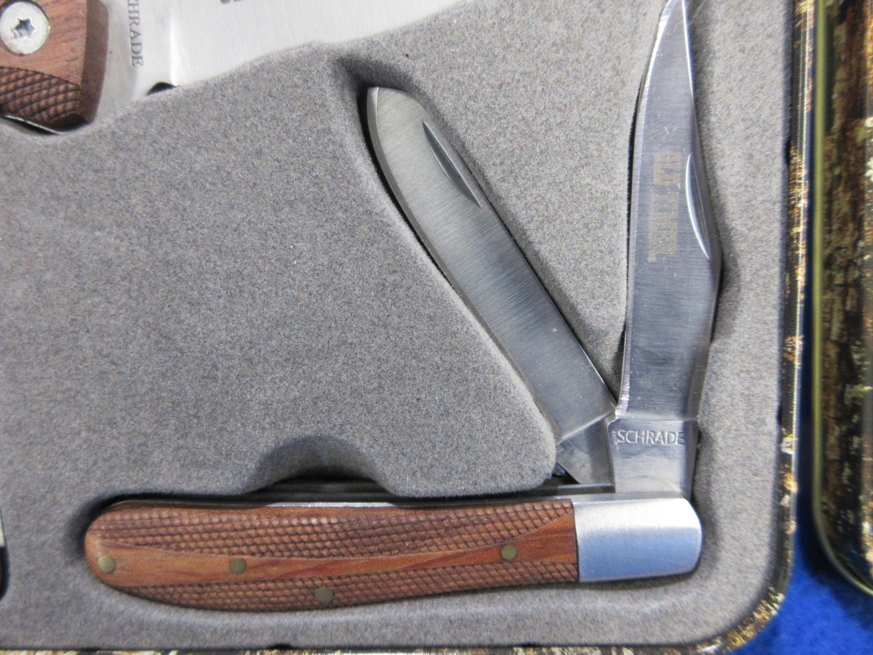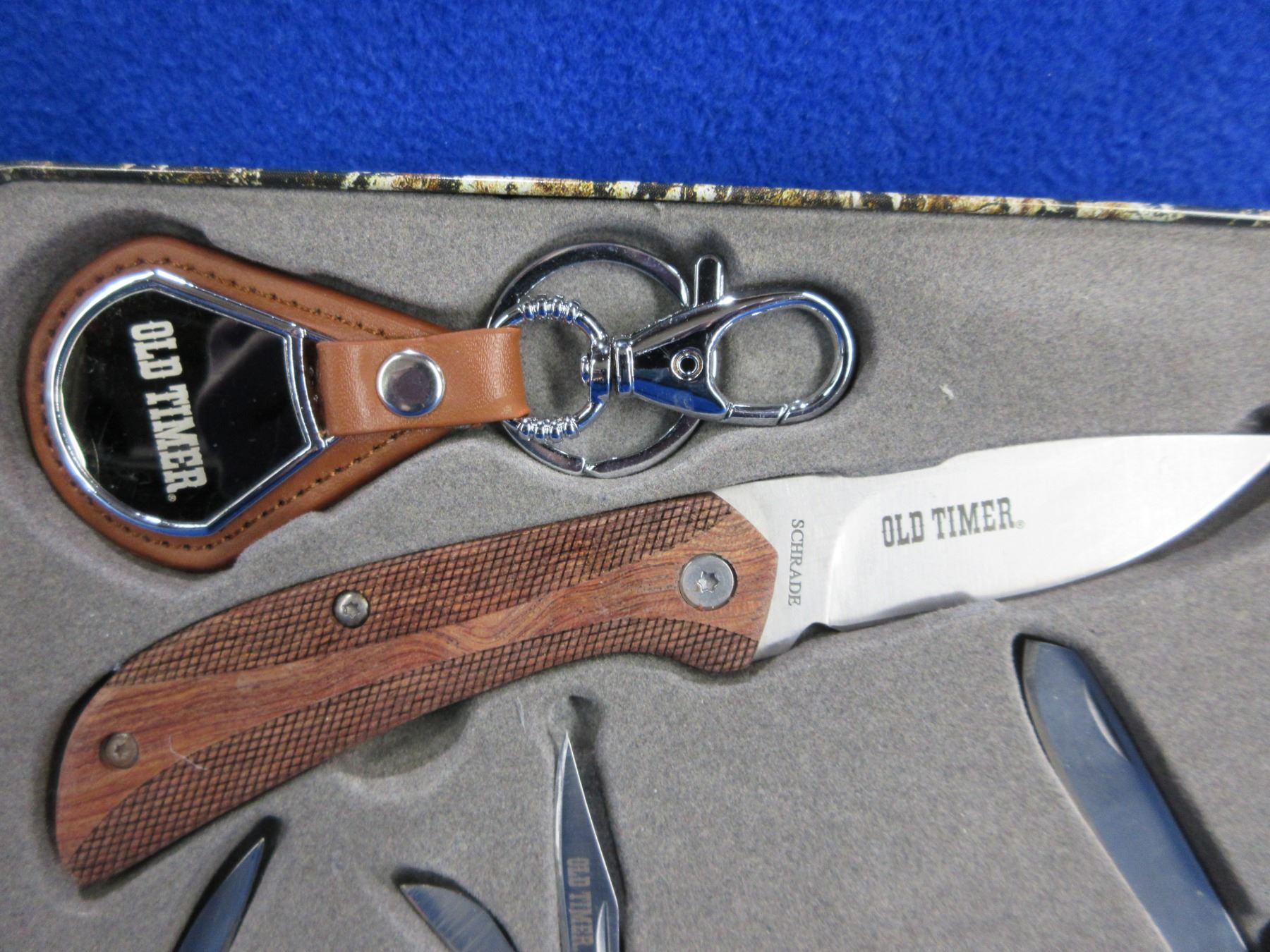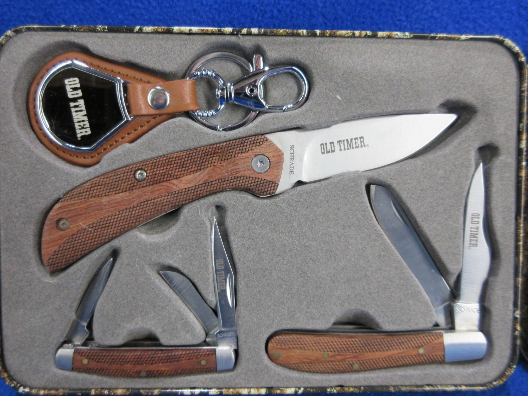 Schrade Old Timer 3 Knife Set with Key Chain In Collector Tin