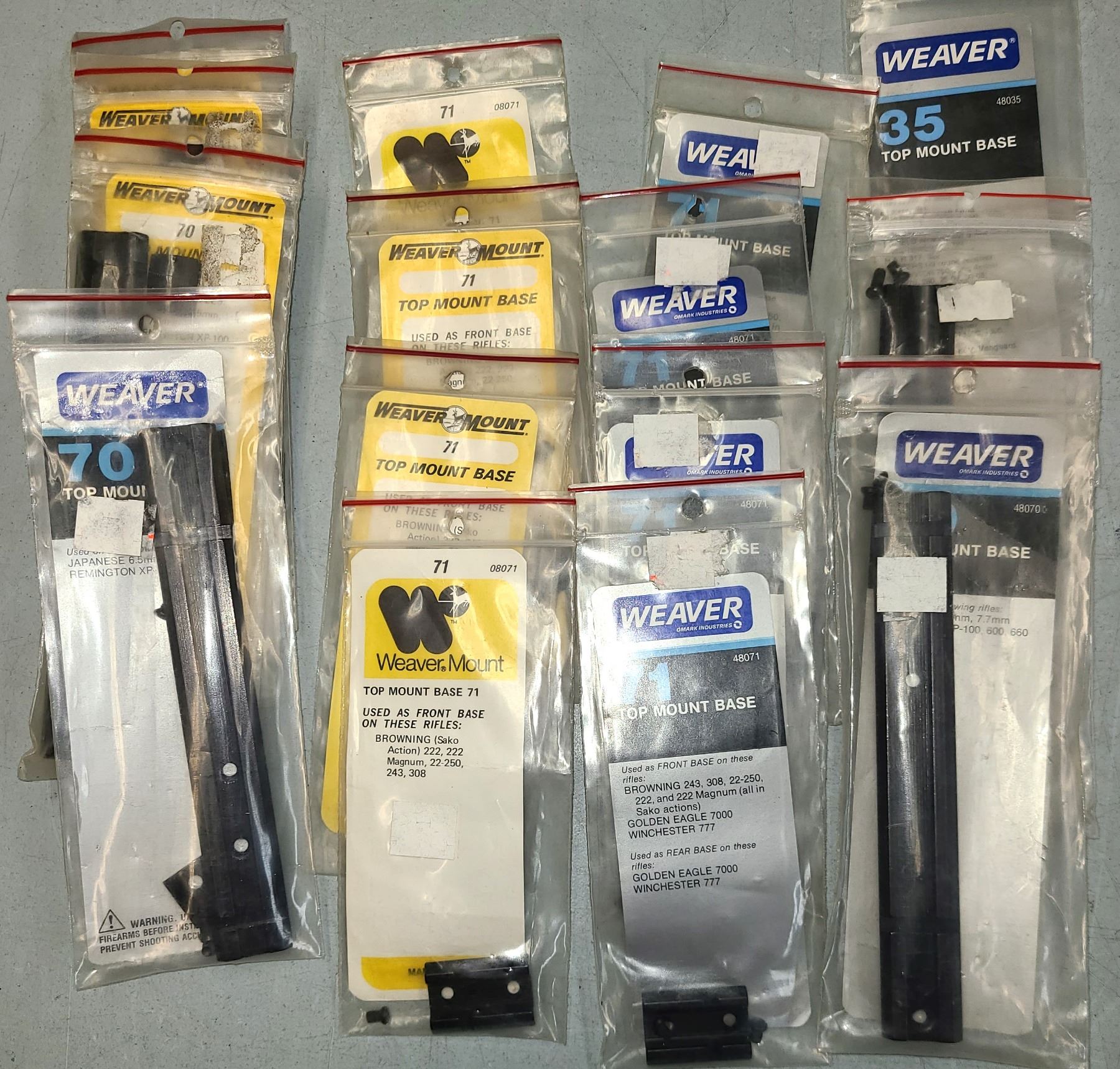 Scope Bases Weaver No 35, 70 & 71 as Shown - 15 pc - NEW