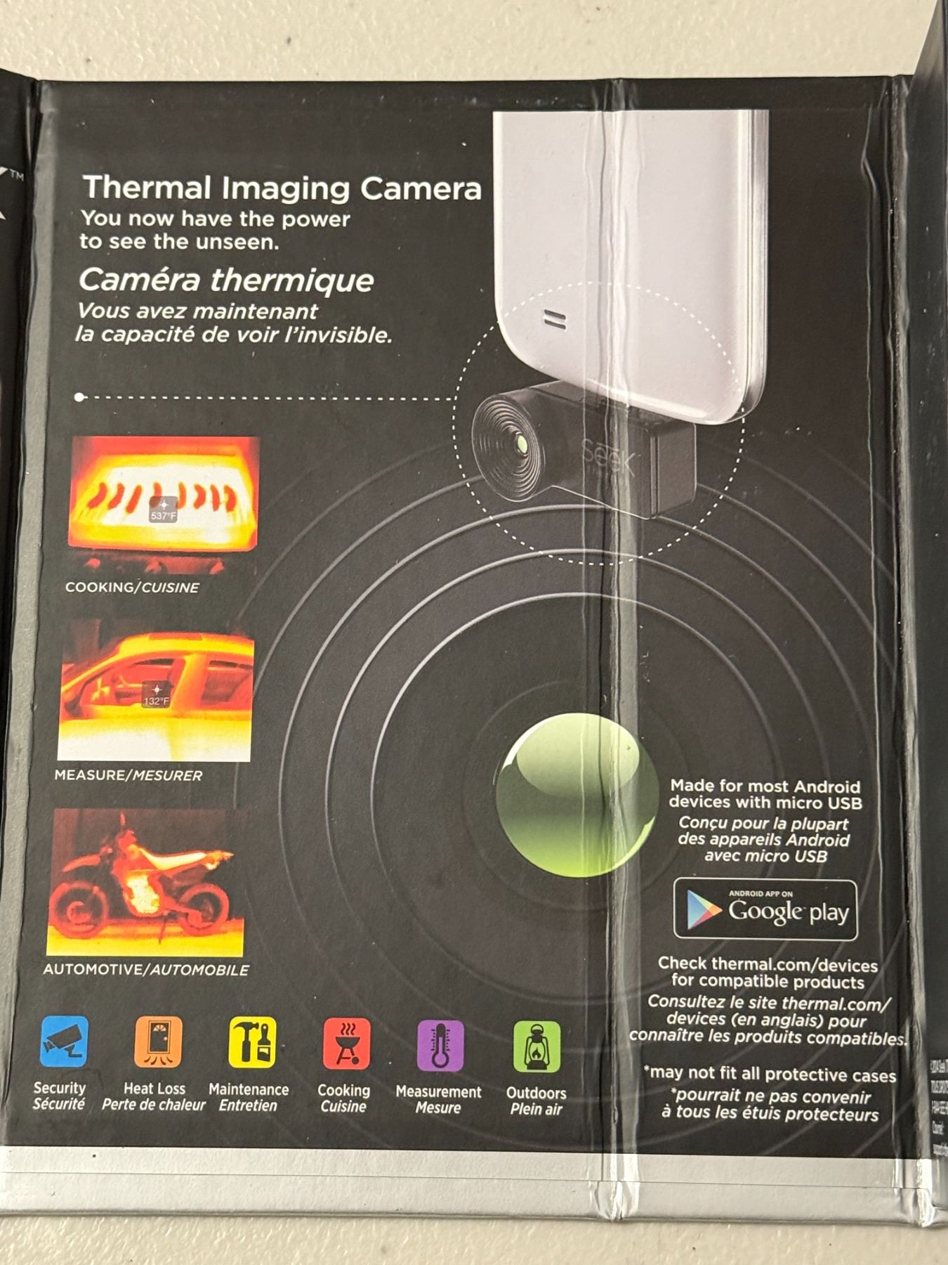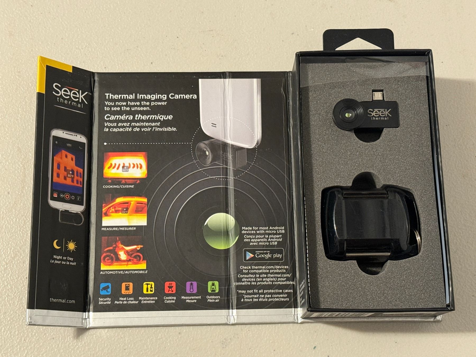 Seek Thermal Imagine Camera in box. Compatible with Android products. Untested.