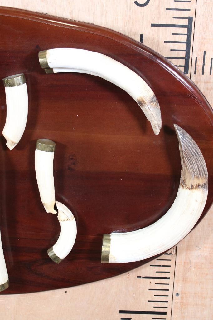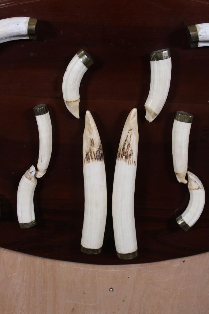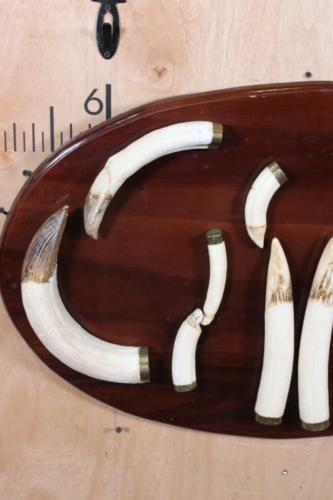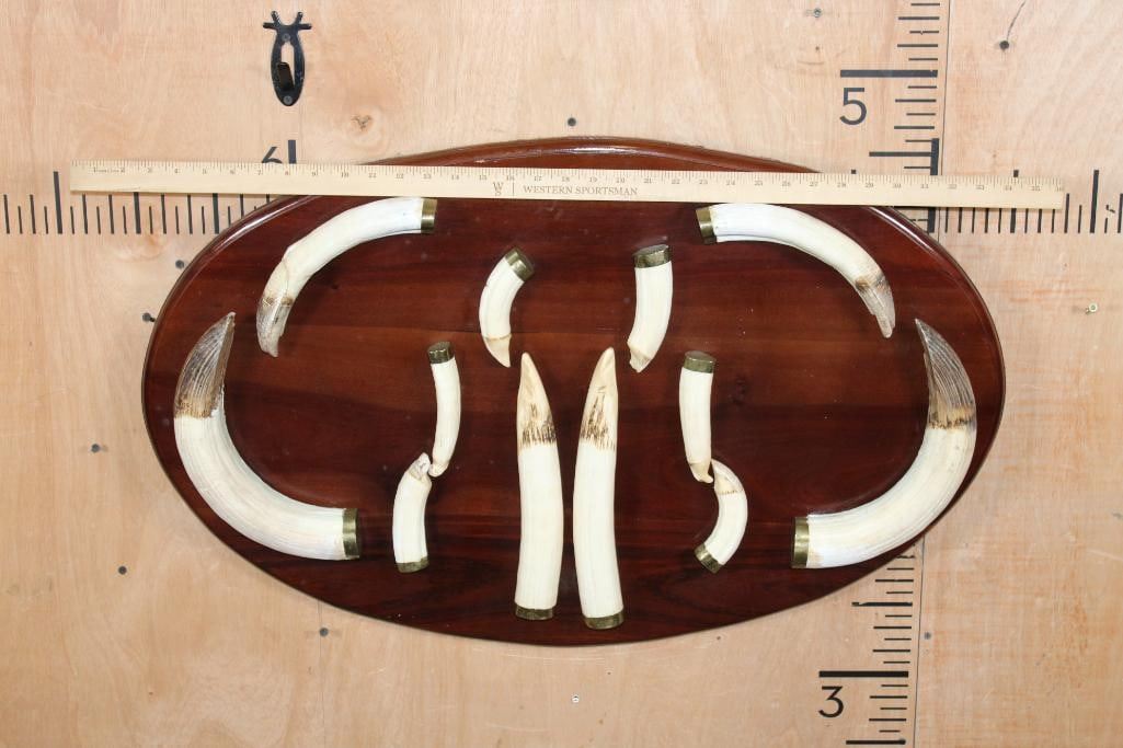 Set of (12) Ivory HIPPOPOTAMUS Tusks Displayed on a Wood Plaque