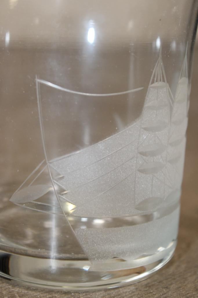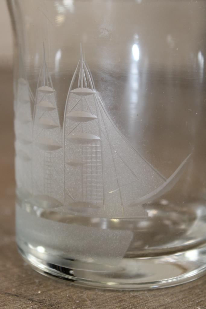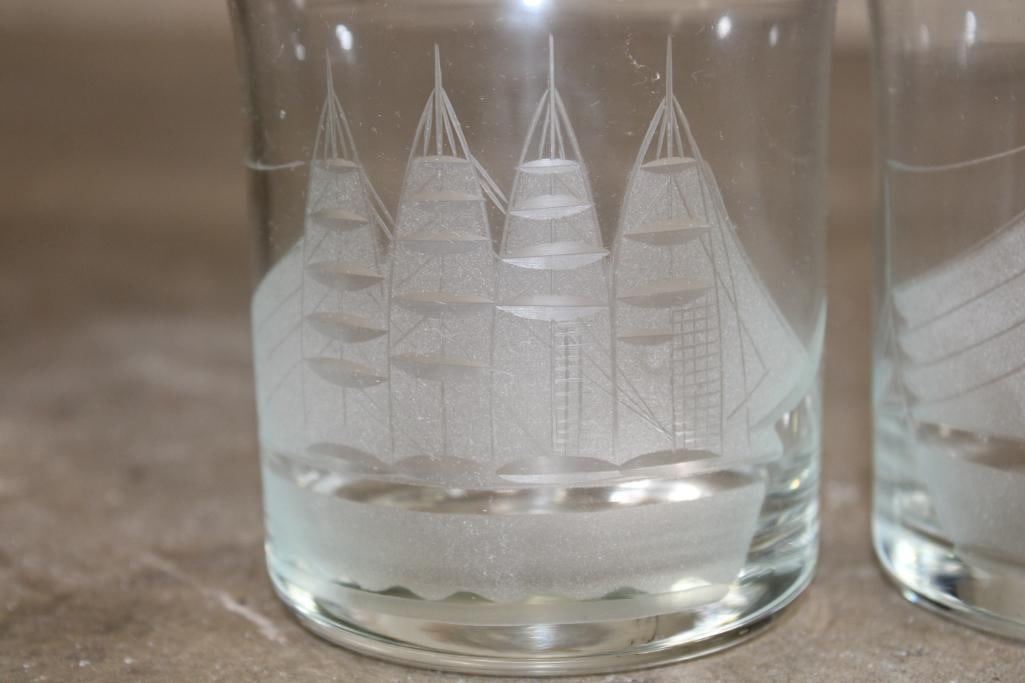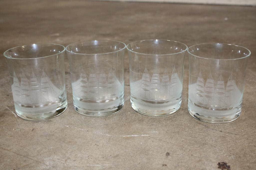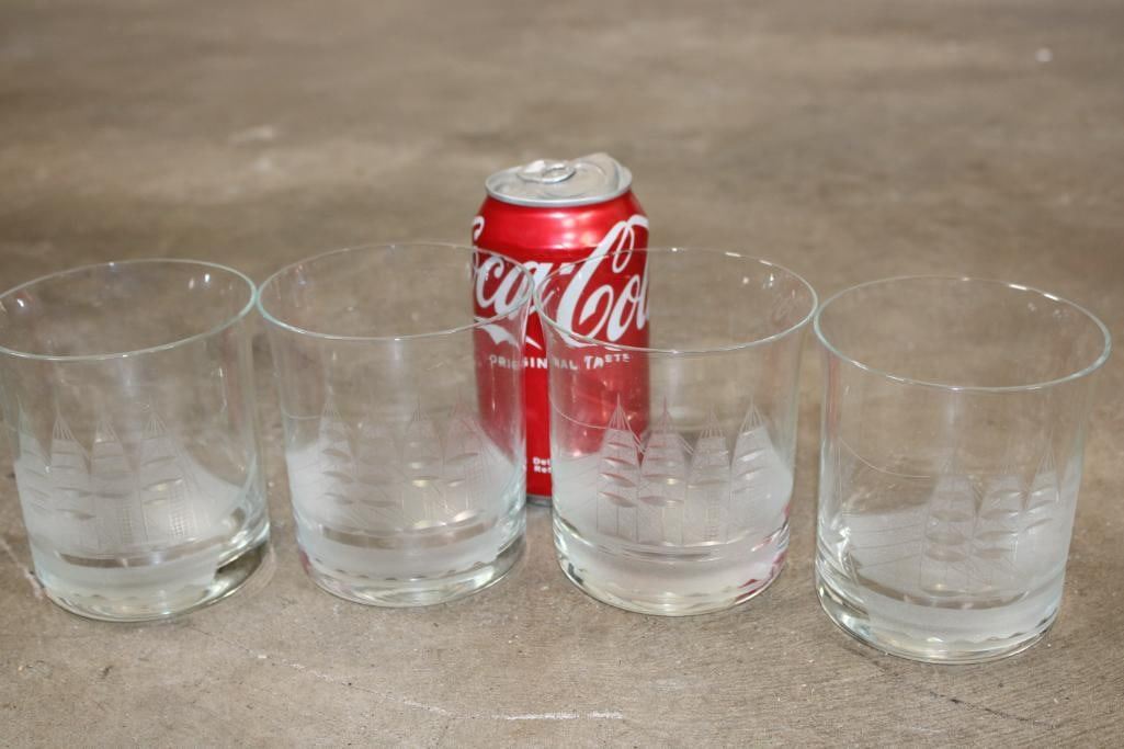 Set of (4) Vintage "Clipper" by Toscany Etched Old-Fashioned Whiskey Glasses. They hold 12 oz each and measure 4" Tall x 3.5" Diameter. They have a lipped rim. (ONE$) COLLECTIBLE BARWARE AND GLASSES