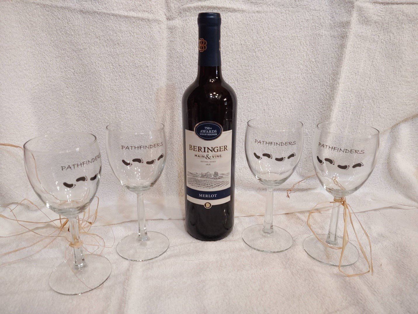 Set of Four Pathfinders Wine Glasses and One bottle of Wine