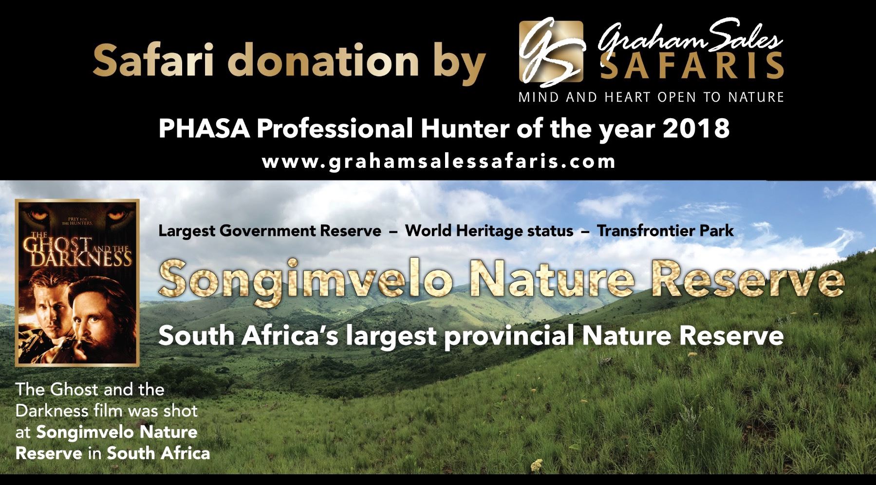 Graham Sales Safaris - PHASA professional hunter of the year 2018 has donated a plains game hunt in South Africa. Graham Sales Safaris(GSS) has professionally guided hunters on thrilling big 5 hunts (Dangerous game), big game hunts, bow hunting Safaris and plains game hunting safaris for nearly two decades. Graham Sales himself is a two-time winner of the PHASA “Uncle Stevie” award (2004 and 2007) as well as the prestigious PHASA Professional Hunter of the Year award in 2018 and is a hunter who believes in ethical hunting. GSS is extremely selective in trophy quality during their Africa hunting Safaris, and we ensure our clients the best possible trophy animal during their Safari, making their hunting Safari a “Premier African Hunting Safari”. This hunt offers the exclusive hunting rights to the Songimvrlo Nature reserve - South Africa's largest nature reserve. This hunt is for two hunters in South Africa in the beautiful mpumalanga province.