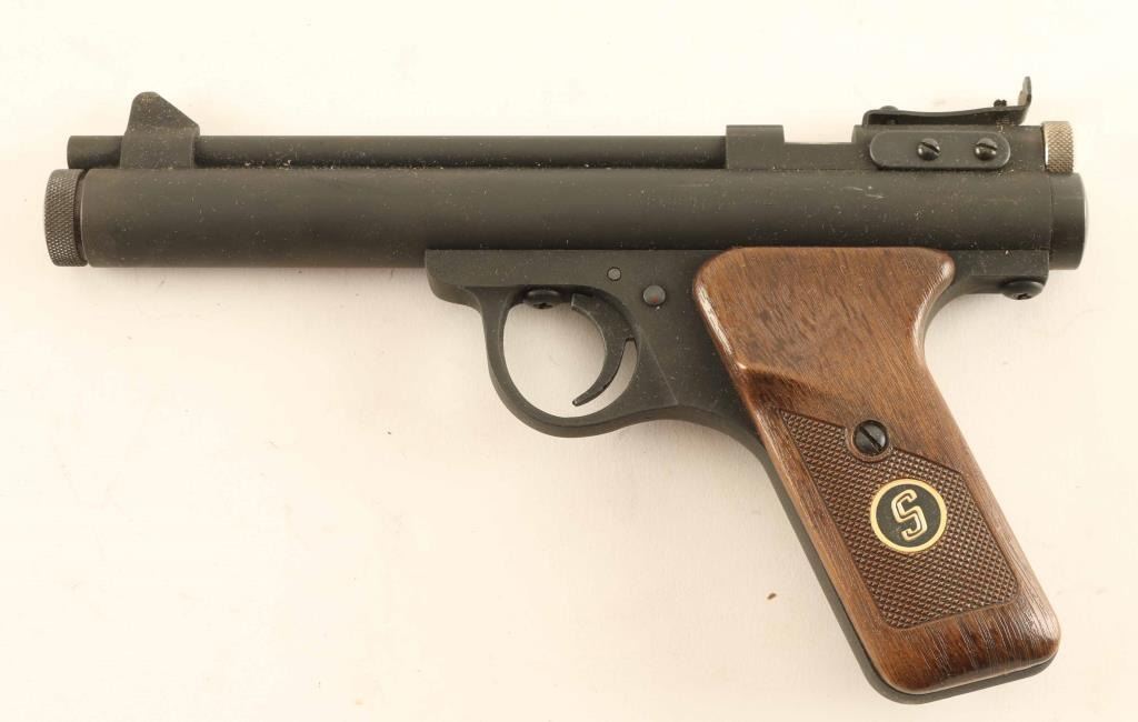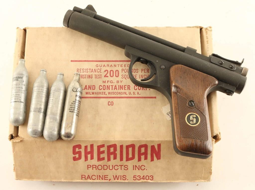 SN: 213291 Single shot CO2 pistol for pellets only, approx 6" barrel, adjustable sights. Almost like new condition, in very good condition factory box, manual. Includes partial box of CO2 cartridges (approx 8).