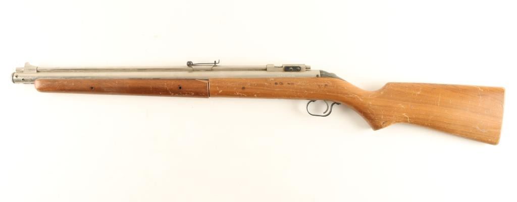 With wood stock and stainless steel barrel and sights.