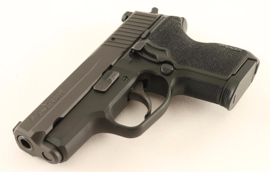 American made double action semi-automatic sub-compact pistol chambered in 9x19mm. Features a black Nitron/hard coat anodized finish, 3.5" barrel, dovetailed three-dot Siglite night sights, smooth trigger, serrated round hammer spur, thumb decocker, push button magazine release, 10 round factory magazine with finger rest floorplate, aluminum alloy frame with knurled front strap, and one-piece wrap-around stippled synthetic grip. Pistol exhibits approximately 98% of it's original finish showing very little wear. Action is strong, bore is pristine and synthetic grips are fine. Condition is excellent. ***Modern Firearm***