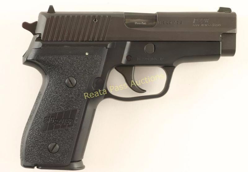 German made compact double-action semi automatic pistol chambered in 9mm Parabellum. Features black K-Kote finish, blued 3.86" barrel, adjustable sights, thumb de-cocker, push button magazine release, 13 round magazine, smooth trigger, exposed hammer with serrated round spur and two-piece textured black synthetic grips. Pistol exhibits approximately 97% of it's black finish showing very minor edge wear, slide wear on the barrel and a few light handling marks. Action is crisp, bore is pristine and synthetic grips are fine. Condition is excellent. ***Modern Firearm***