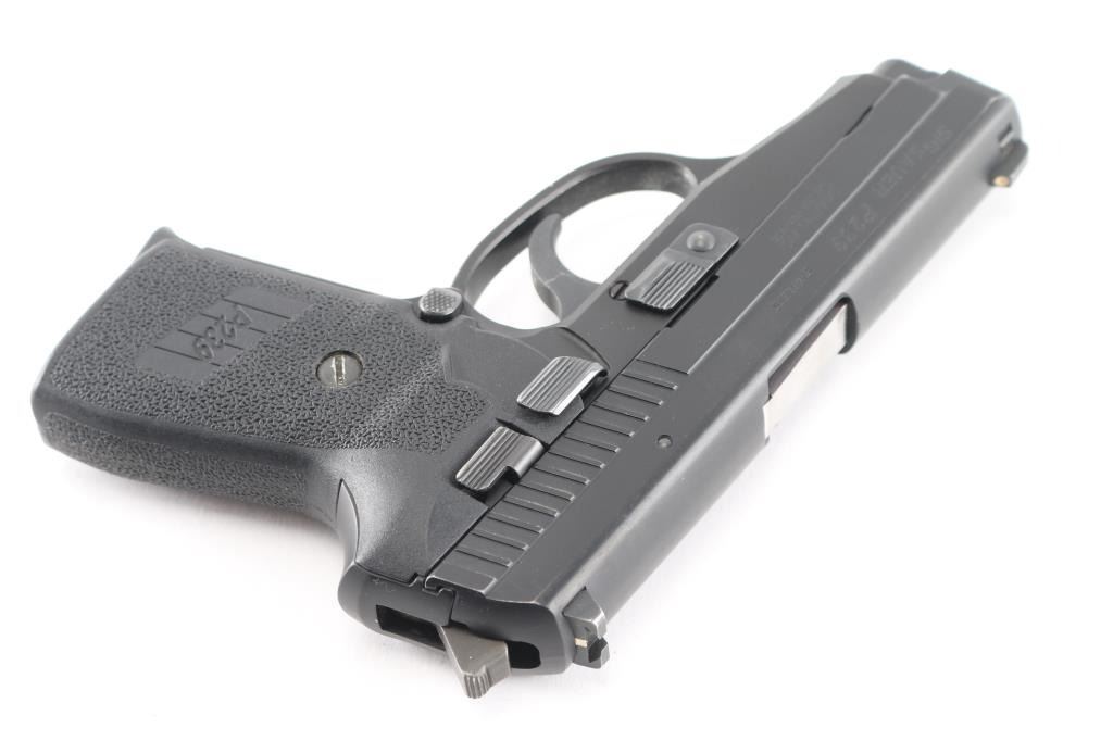 American made double action semi-automatic compact pistol chambered in 9mm. Features a black Nitron finished stainless steel slide, 3.5" barrel, dovetailed sights w/ blade front & window rear sight with white line, smooth trigger, serrated hammer spur, thumb decocking lever, push button magazine release, factory 7 round magazine with finger rest floorplate, black hard anodized alloy frame w/ serrated front strap, and two-piece textured black synthetic wrap-around grips. Bore is excellent/bright. Metal finish and grips looks great. Action is smooth.Condition is NRA Excellent. Modern Firearm.