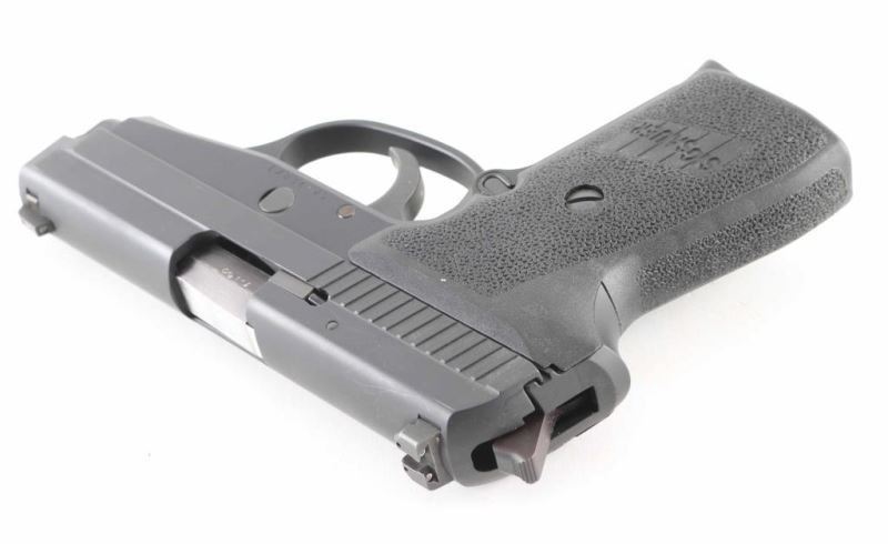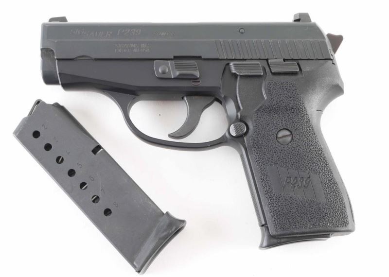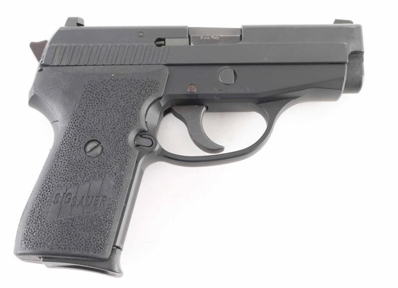 American made double action semi-automatic compact pistol chambered in 9x19mm. Features a black Nitron finished stainless steel slide, 3.6" barrel, dovetailed blade front night sight with white dot, dovetailed rear night sight with square notch & white dots, smooth trigger, serrated hammer spur, decocking lever on the left side of the frame, slide catch on the left side of the frame, push button magazine release, factory 8 round magazine with finger rest floorplate, black hard anodized alloy frame, and factory two-piece textured black polymer grips. Pistol retains approximately 95% of it's original finish showing moderated holster wear and some scattered scratches/scuffs. Action is smooth, the bore is pristine and the polymer grips are fine. Night sights retain dim glow. Includes spare magazine. Condition is NRA Excellent *** Modern Firearm ***