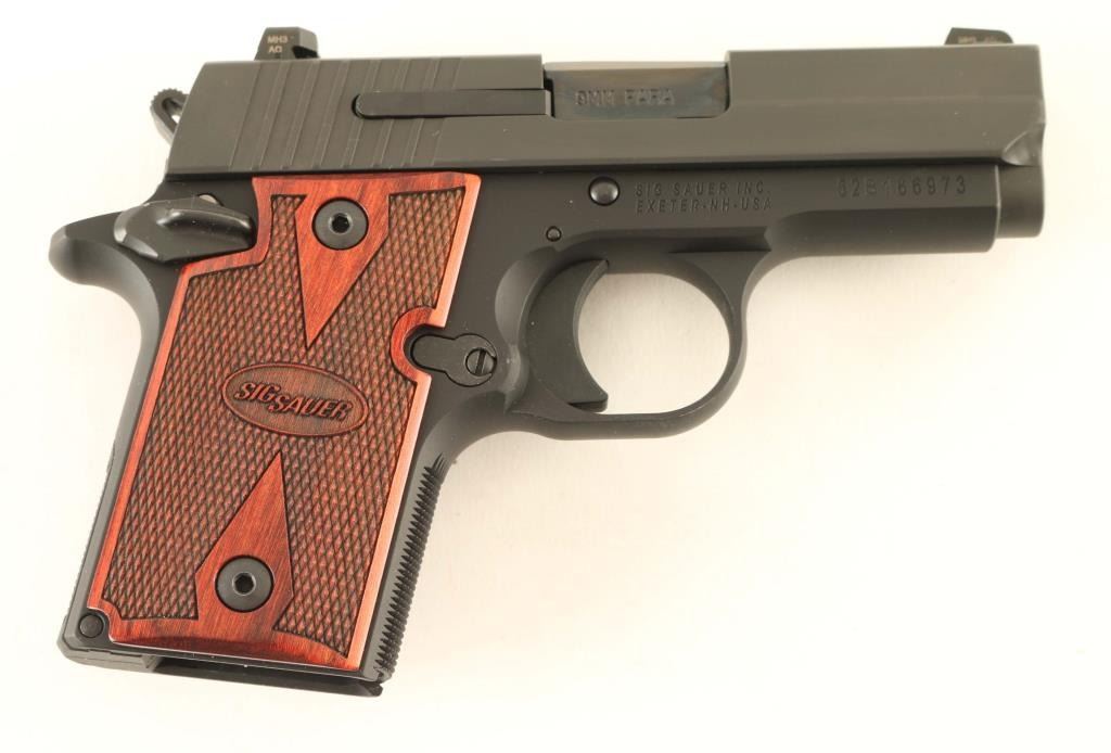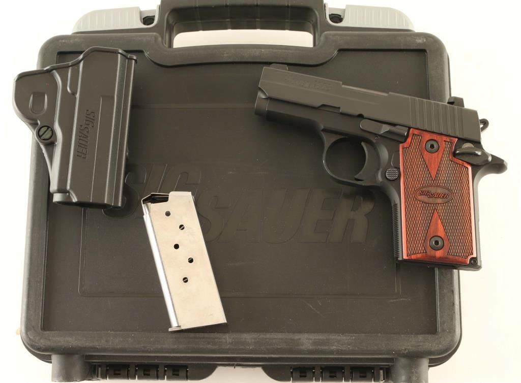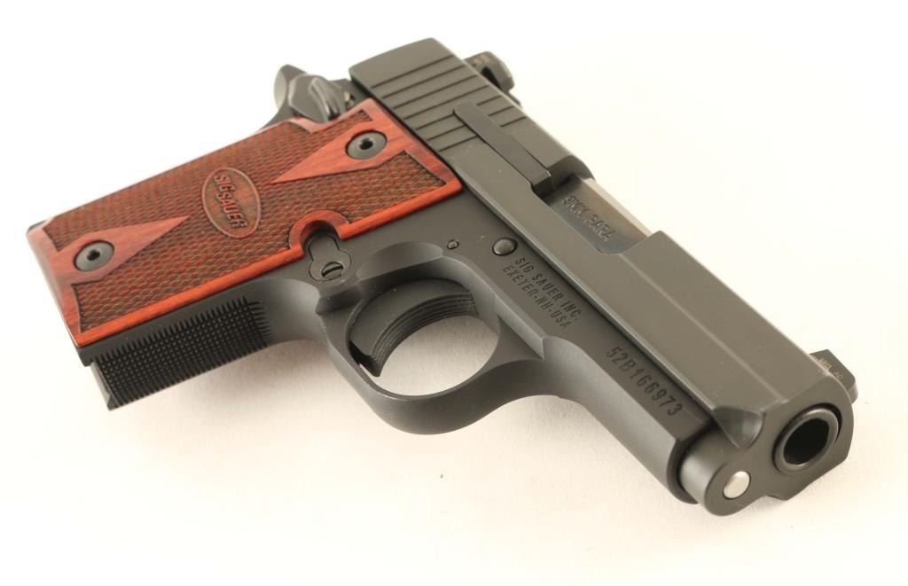 Single action semiautomatic pistol features 3" barrel, fixed 3 dot night sights in dovetails, ambidextrous manual safety. Finish is matte blue, with checkered wood grips. Night sights glow in dim light. Bore is excellent. Overall condition is like new, with few handling marks. Includes one magazine, cable lock, kydex clip-on holster, manual, hard plastic carry case. Condition is NRA Excellent - Like New *** Modern Firearm ***