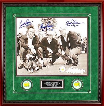 Autographed by: Arnold Palmer, Jack Nicklaus & Gary Player, with all including the dates they won the Masters Championship next to their autograph
