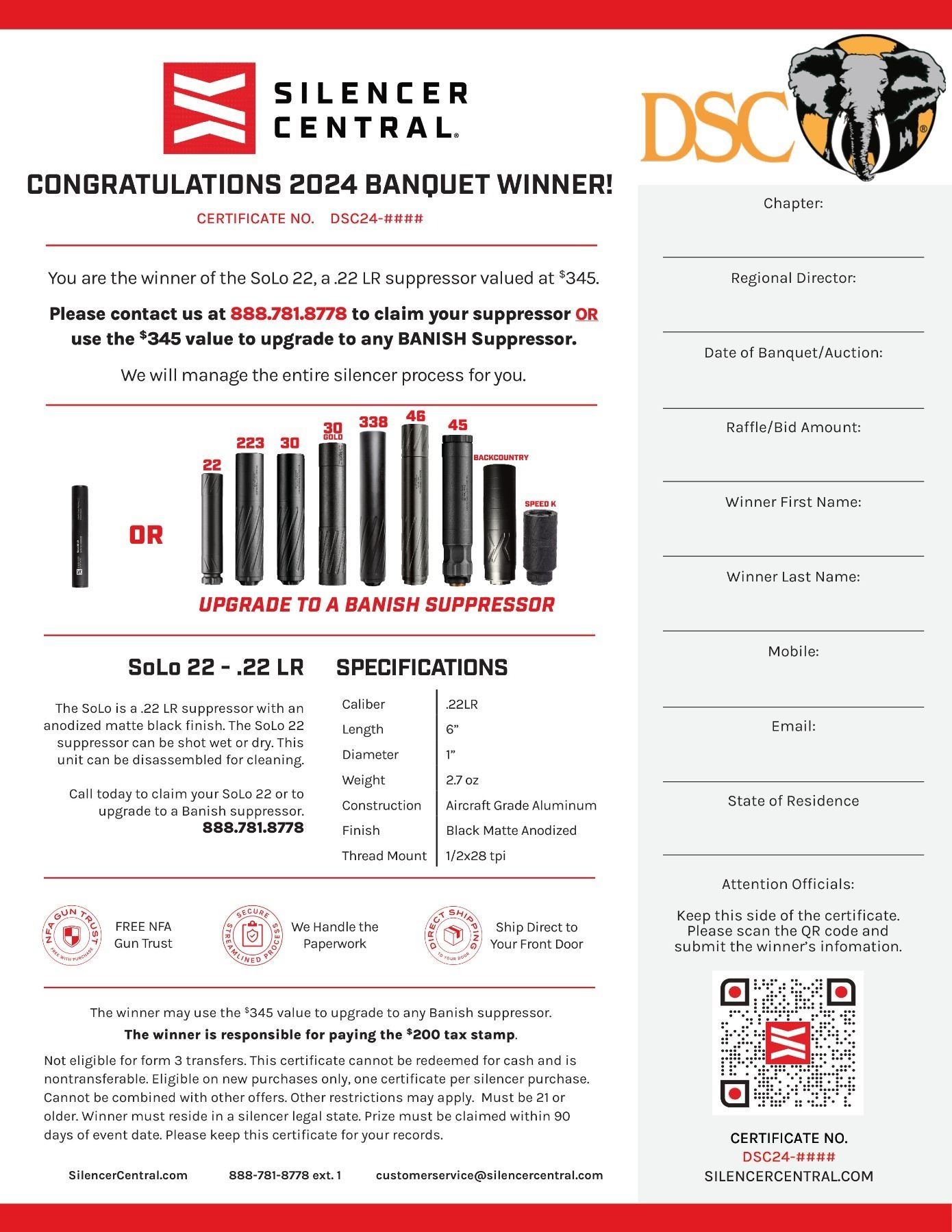 •DSC FRONTLINE is a qualified charitable organization under Section 501(c)(3) of the Internal Revenue Code of 1986, as amended. Donations to FRONTLINE are deductible under Section 170(c) of the Internal Revenue Code. Consult your tax professional for the deductibility of amounts paid for auction purchases.