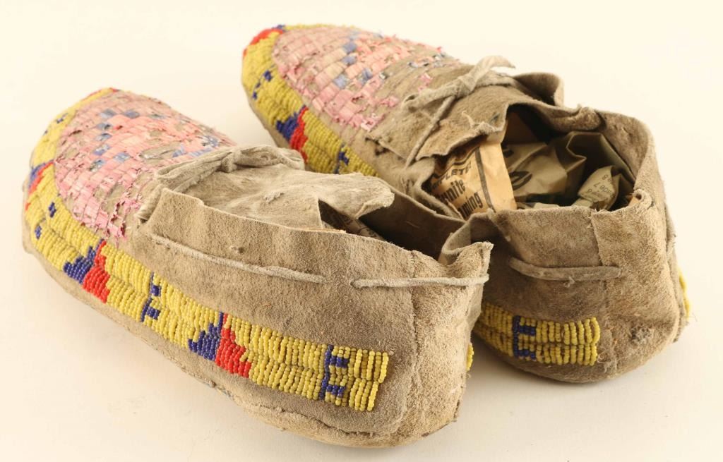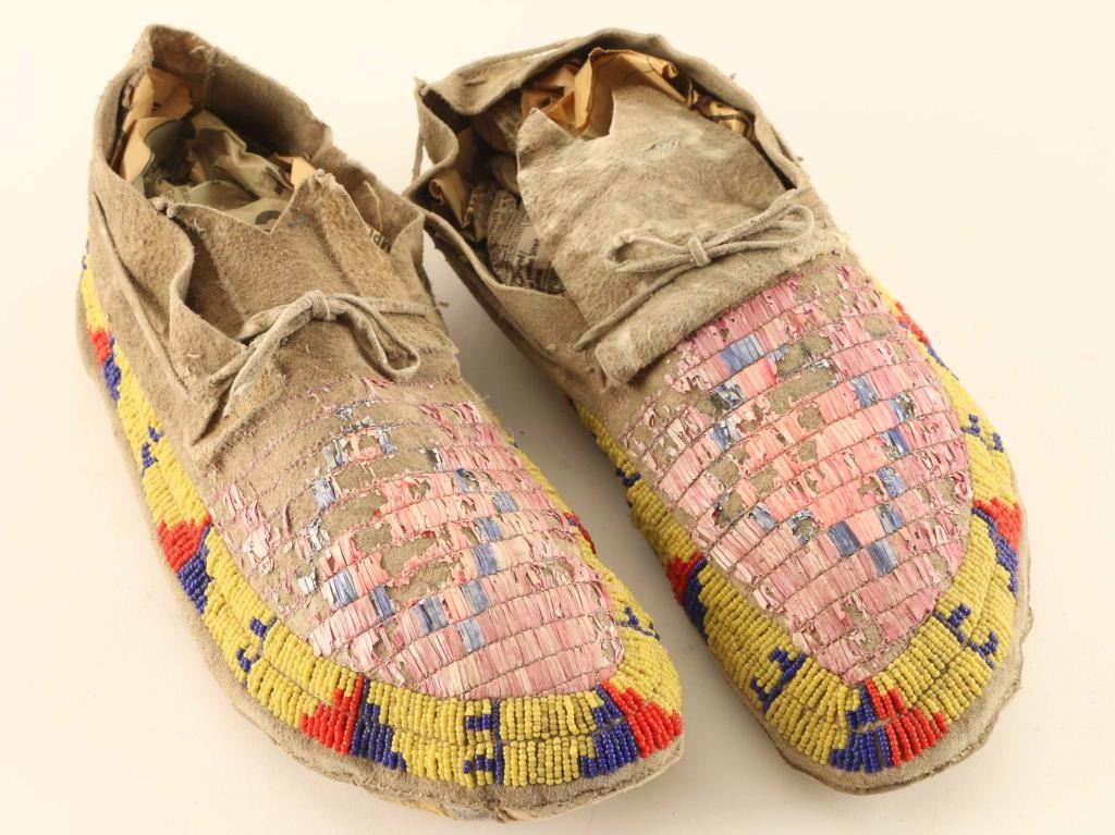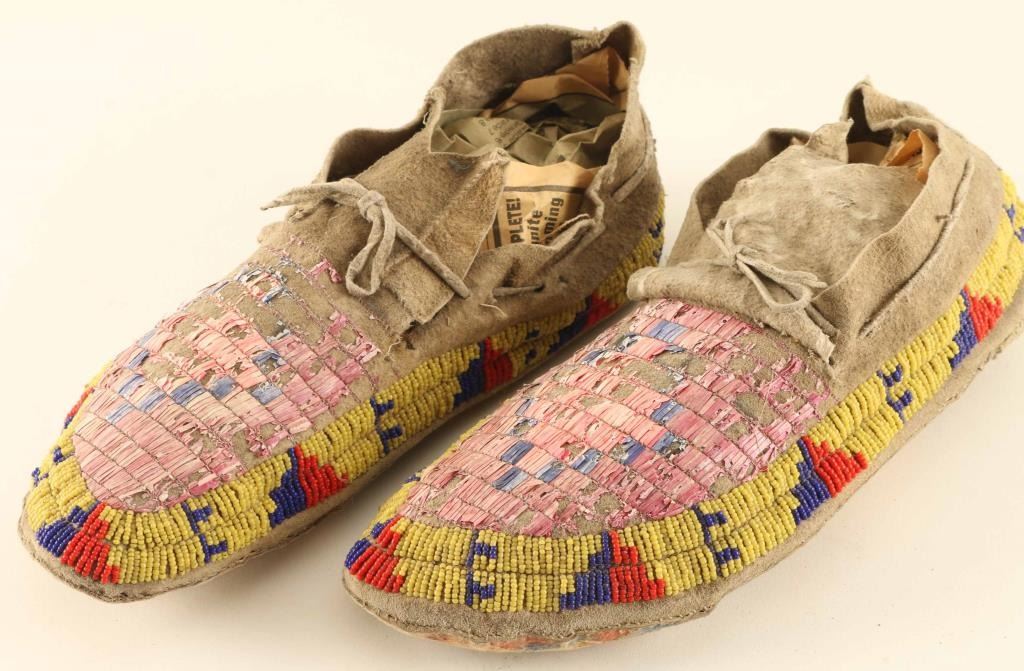 Bright Colorful Beadwork With Scattered Losses To The Quill Work Otherwise Good.