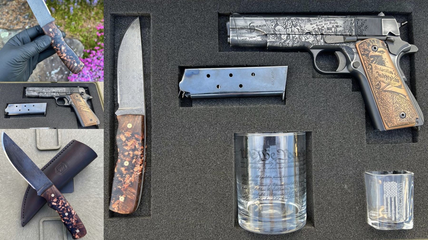 Smackrell Outdoors Custom Knife Set with bonus Commemorative Auto Ordnance 1911