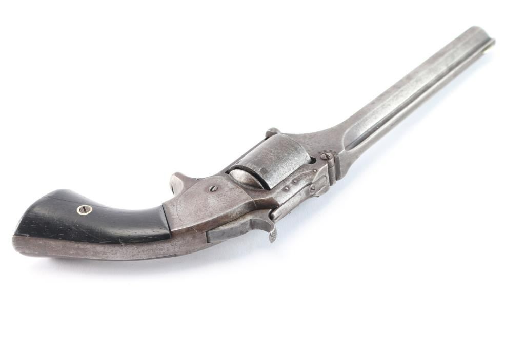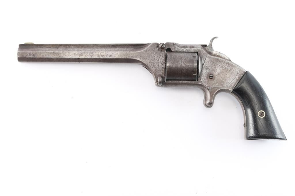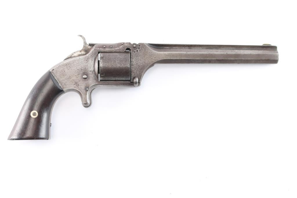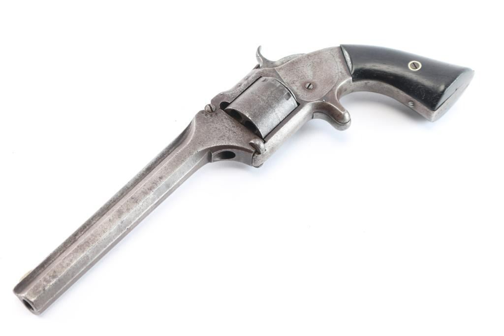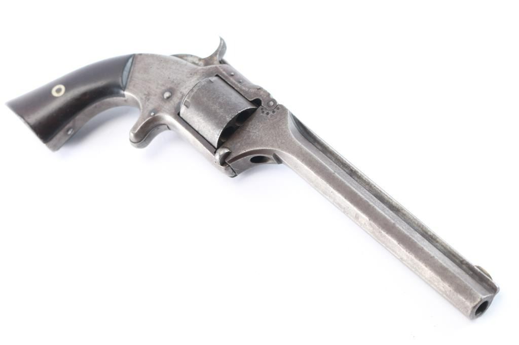Civil War Era. Missing ejector and has marks around hinge to tighten hinge area after crack and repair. Good metal and grips. Markings legible. Works but lock lock up slips. John Kopec estate collection
