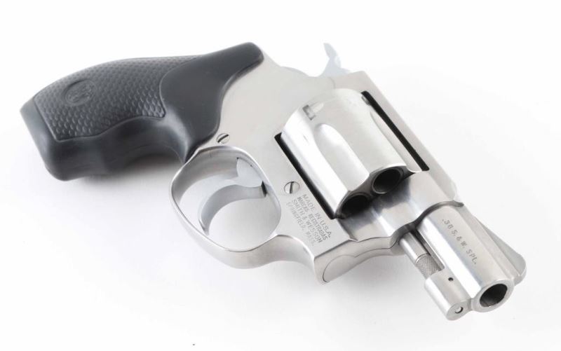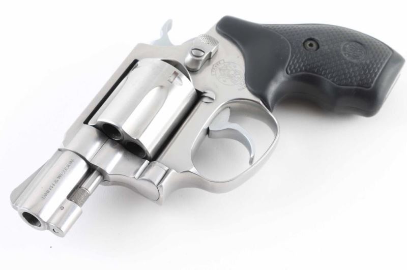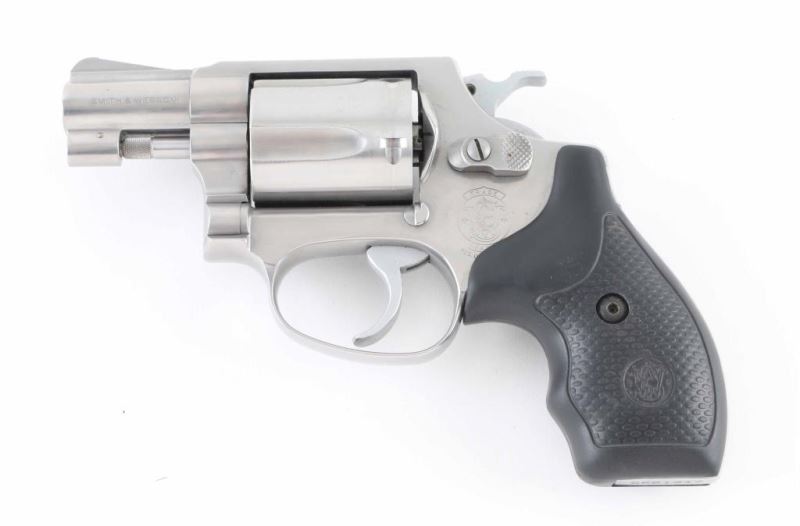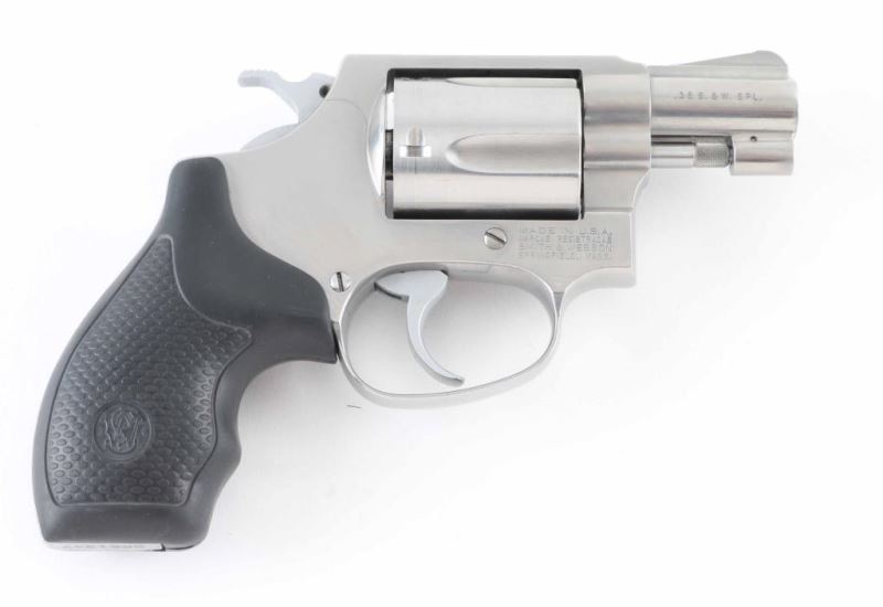 Double action revolver features stainless steel construction, black rubber "boot" grips with embossed S&W logo, 1-7/8" barrel, fixed sights, round butt, "J" frame, 5 shot fluted cylinder. Overall condition is near excellent with smooth operation and tight lock-up, few light scratches, very good bore. Grips are very good condition. Condition is near NRA Excellent *** Modern Firearm ***