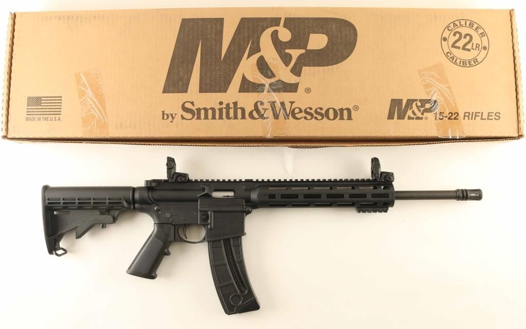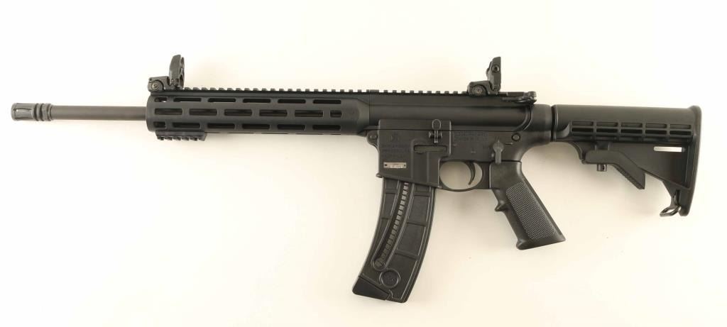 Semiautomatic rimfire rifle features 16" barrel, flash suppressor, Picatinny rail on top of receiver & handguard (also small section on bottom of handguard), Magpul MBUS polymer flip-up adjustable sights, collapsing stock, manual safety. Accepts proprietary magazines, will not accept DPMS or similar style 22LR AR magazines. Finish is matte black on metal parts (bright metal bolt body), black polymer furniture. Bore is excellent. Metal is 98% or better coverage with few signs of handling. Black polymer parts are excellent, like new. Includes (1) polymer magazine, original factory cardboard shipping box & paperwork. Condition is NRA Excellent - like new *** Modern Firearm ***