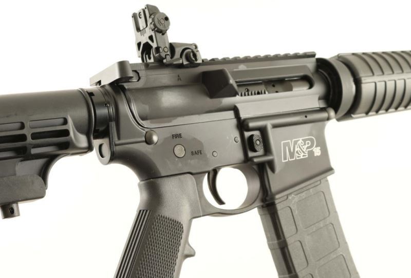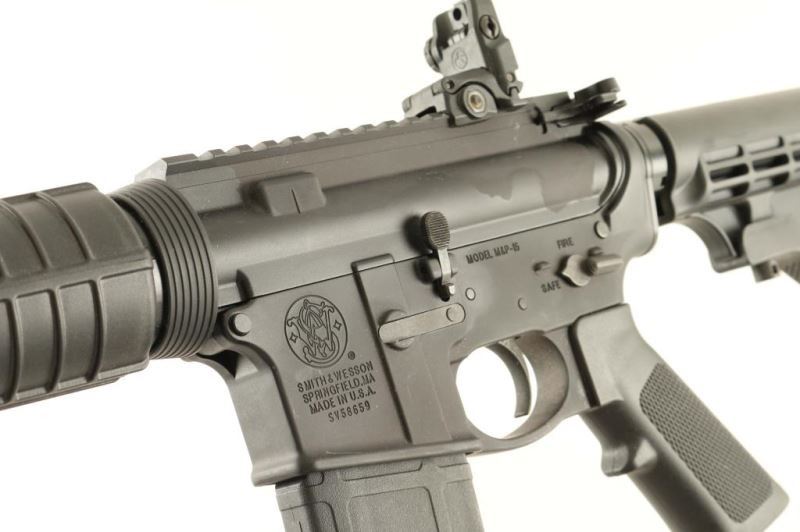 American made semi-automatic AR platform rifle chambered in 5.56x45mm. Features a matte black finish, 1:9 twist 16.25" semi-heavy barrel with A2 style birdcage flash hider, A2 front sight with bayonet lug, Magpul Mbus flip-up rear sight, carbine length gas system with standard handguard, flat-top upper with shell deflector & no dust cover or forward assist, manual safety, push button magazine release, 30 round Pmag magazine, sling swivels, AR-15 profile BCG, standard trigger & charging handle, A2 pistol grip and S&W marked six-position collapsible shoulder stock. Rifle exhibits approximately 99% of it's original finish showing only a few minor scratches and scuffs. Action is sound, bore is excellent and synthetic stocks are fine. Condition is NRA excellent. ***Modern Firearm***