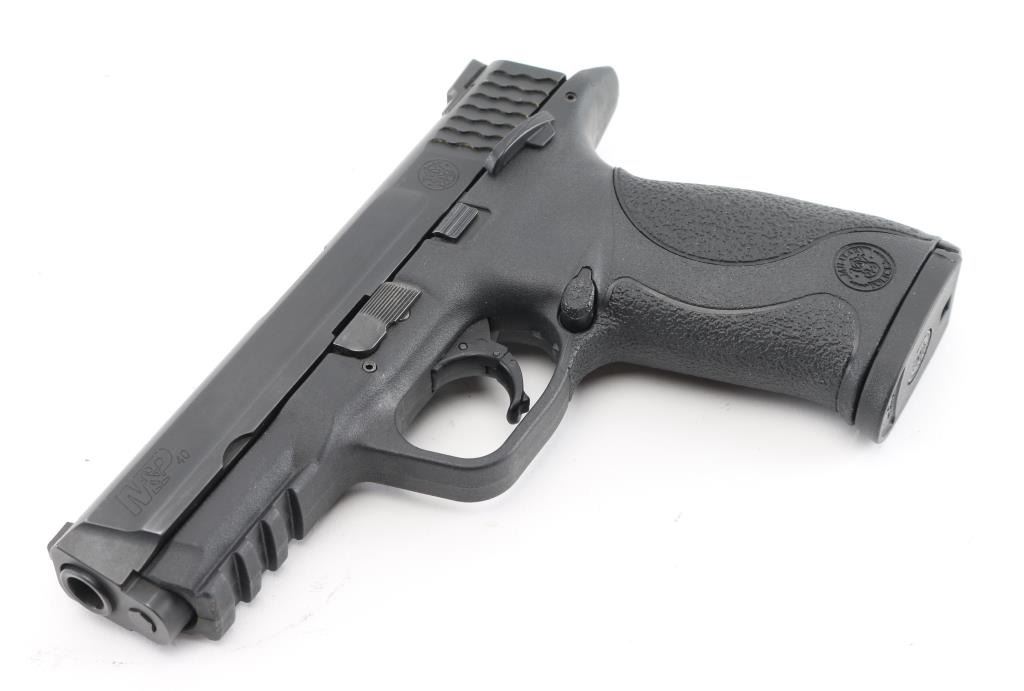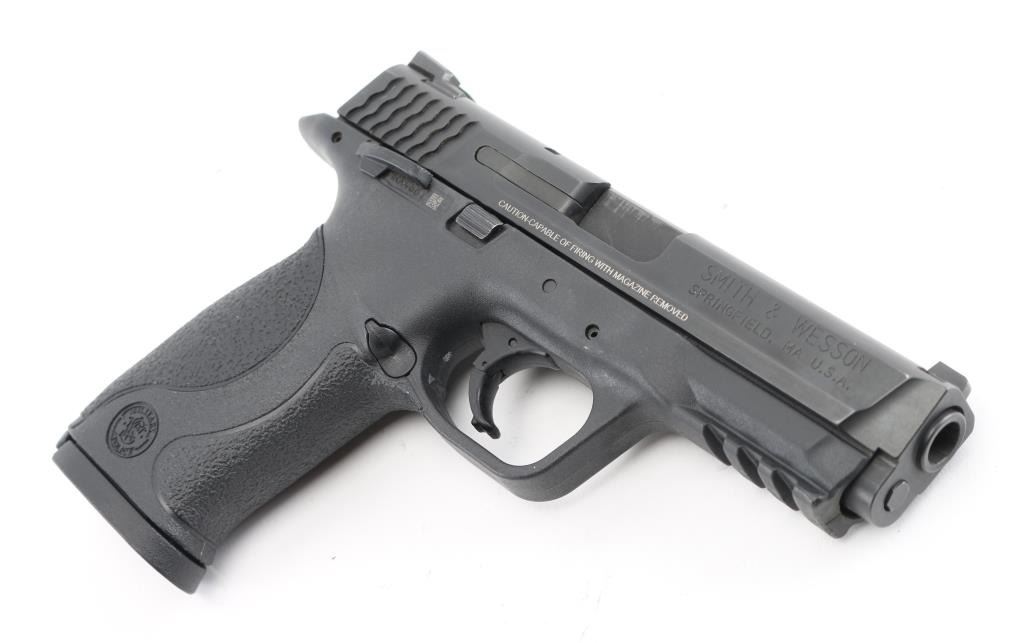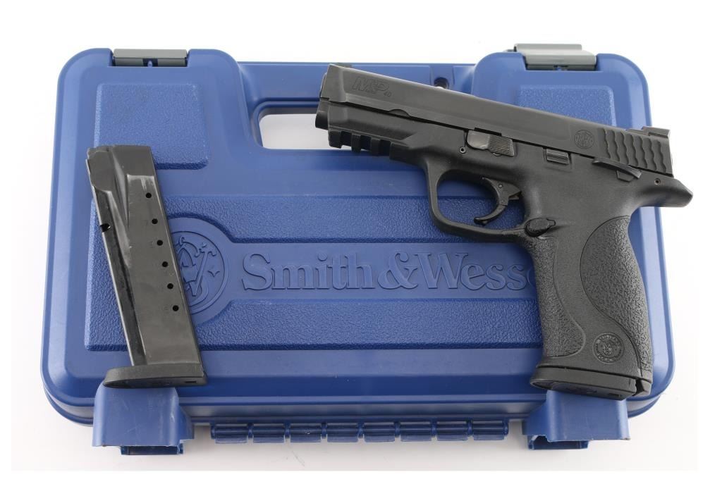 American made full size semi-automatic pistol, SA, striker-fired design eliminates the need for an external hammer, extended rigid embedded stainless steel chassis to reduce flex and torque when firing, approximately 4 1/4" barrel, bore is bright, white-dot front sight and white 2-dot rear sight, stainless-steel barrel and slide feature an Armornite® finish, rear serrations, accessory rail below the slide and in front of the trigger guard, two-piece trigger, polymer frame, aggressive grip texture, 15-round magazine, Includes the original plastic case with instruction manual, extra magazine and two extra palmswell grip inserts (total of three). **NRA Near Perfect** Modern Firearm