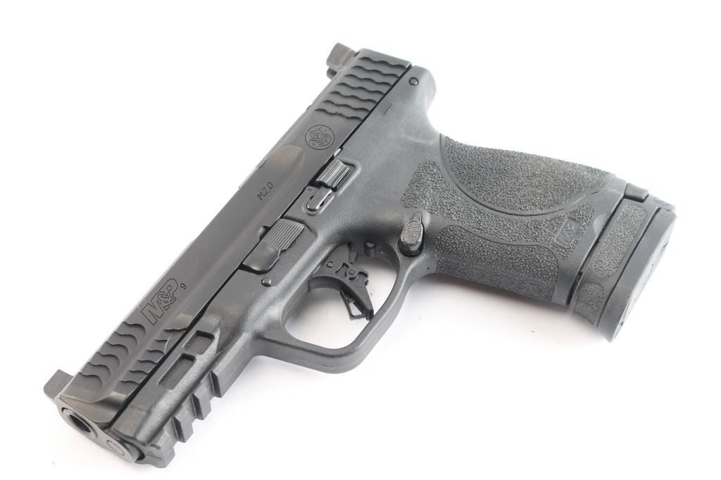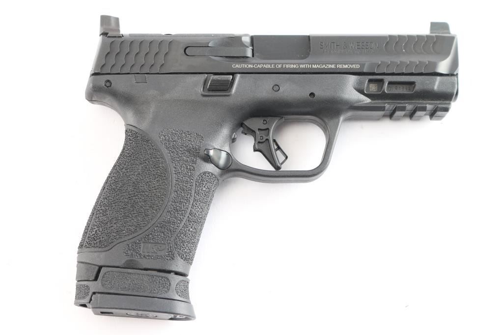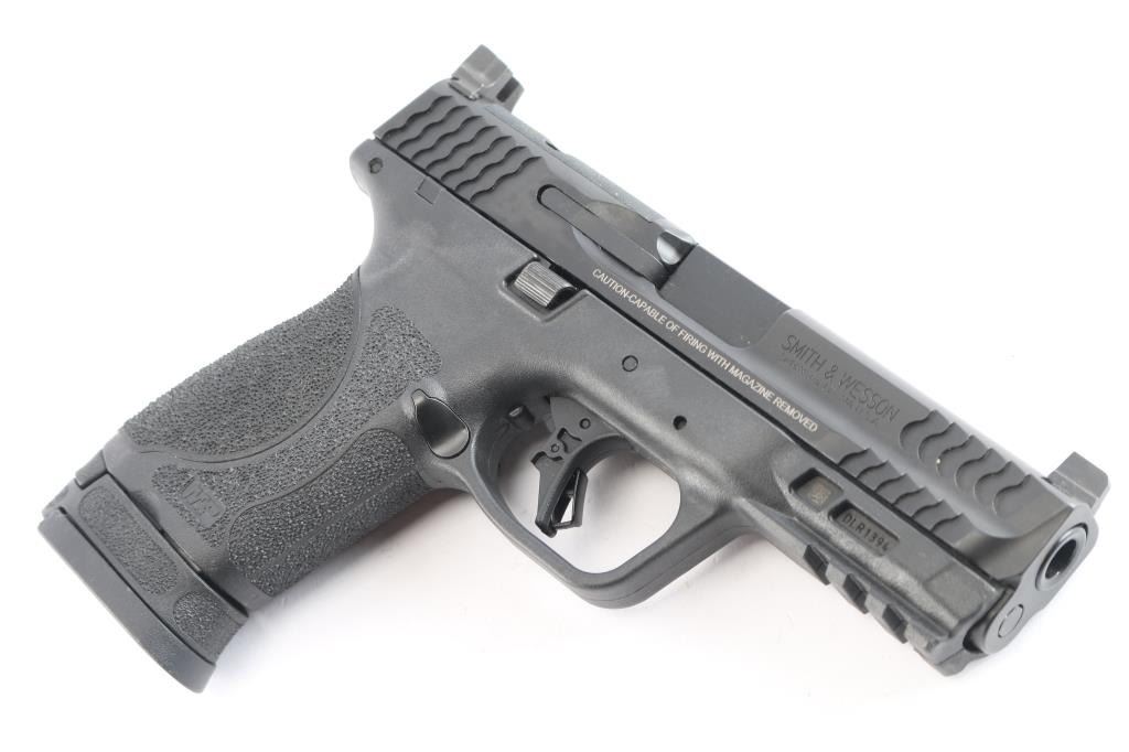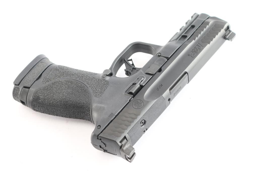 American made full-size, semi-automatic, striker-fired pistol, high-strength polymer frame reinforced with a rigid stainless steel chassis w/Pic rail and interchangeable grip back strap. A black Melonite finish, approximately 7" slide with suppressor height three white dot sights, front and back serrations, slide cut for optics, approximately 4" barrel, slide stop and reversible mag release button. Bore is pristine. Retains approx. 98% finish with little wear. Comes with one 17rd metal magazine. NRA condition is Excellent. ***Modern Firearm***.