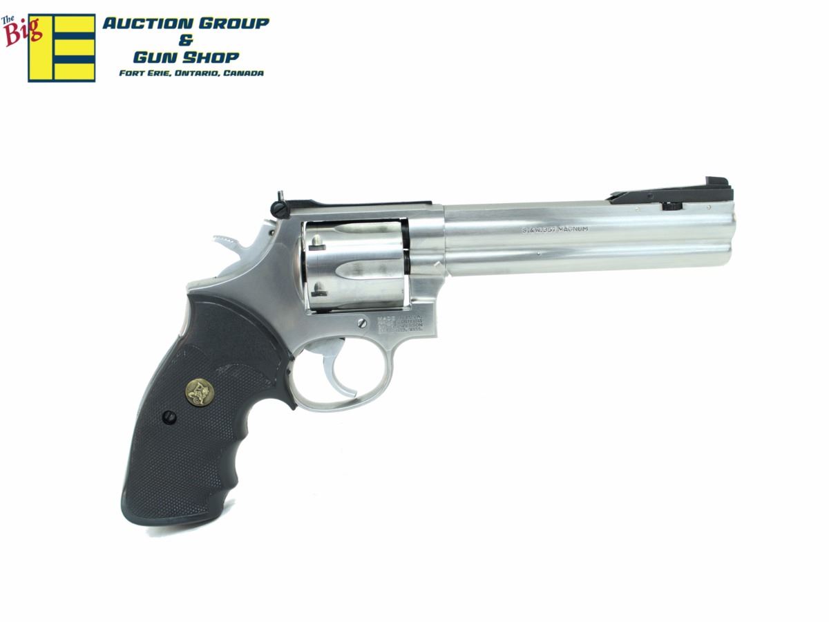 SMITH AND WESSON, 357 Mag Revolver. 152MM Barrel, Pachmayr Grips, Stainless Frame has few Marks, Bore is Good, Condition 8/10, SN. AYW2XXX Stock 2196HR -5277 G1