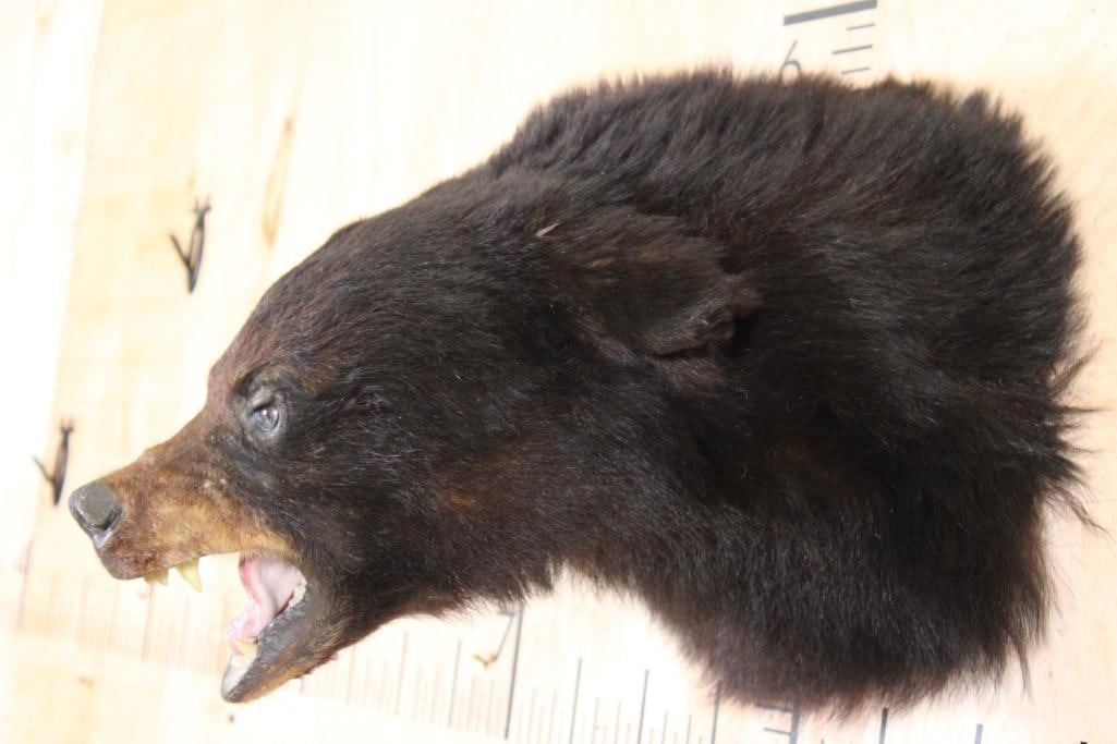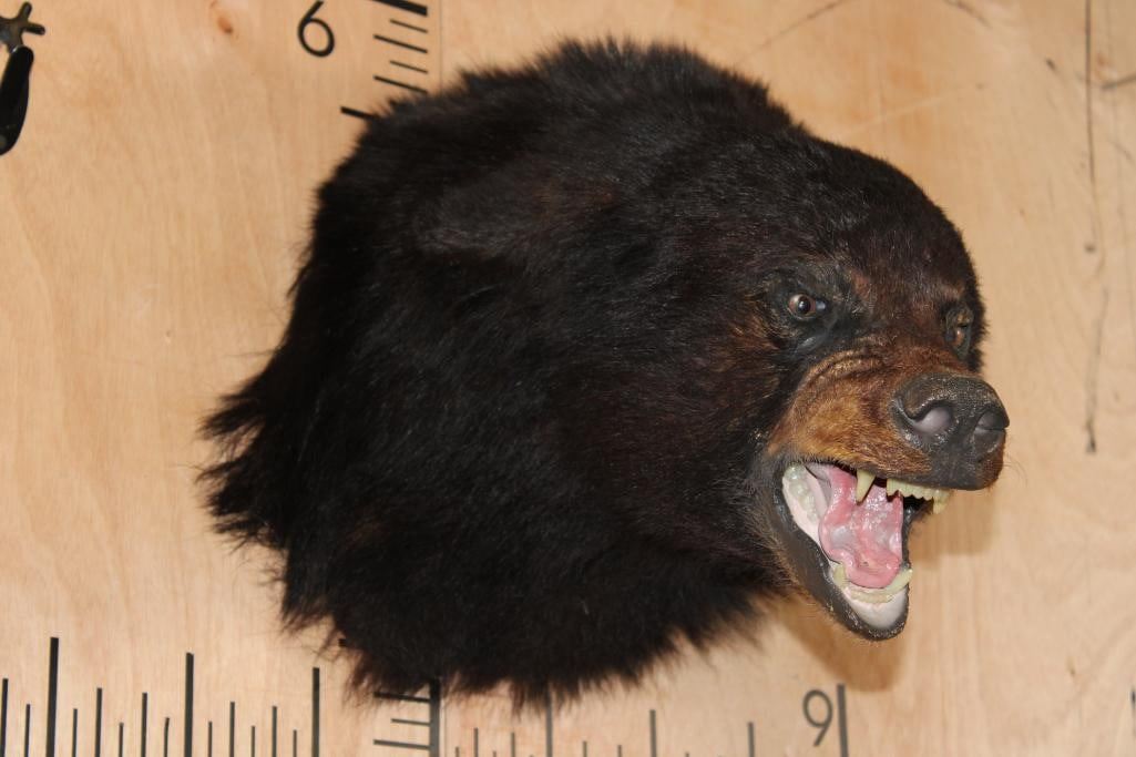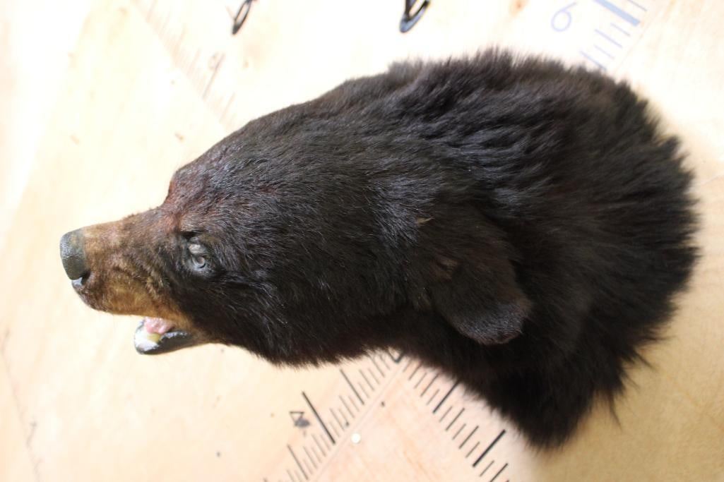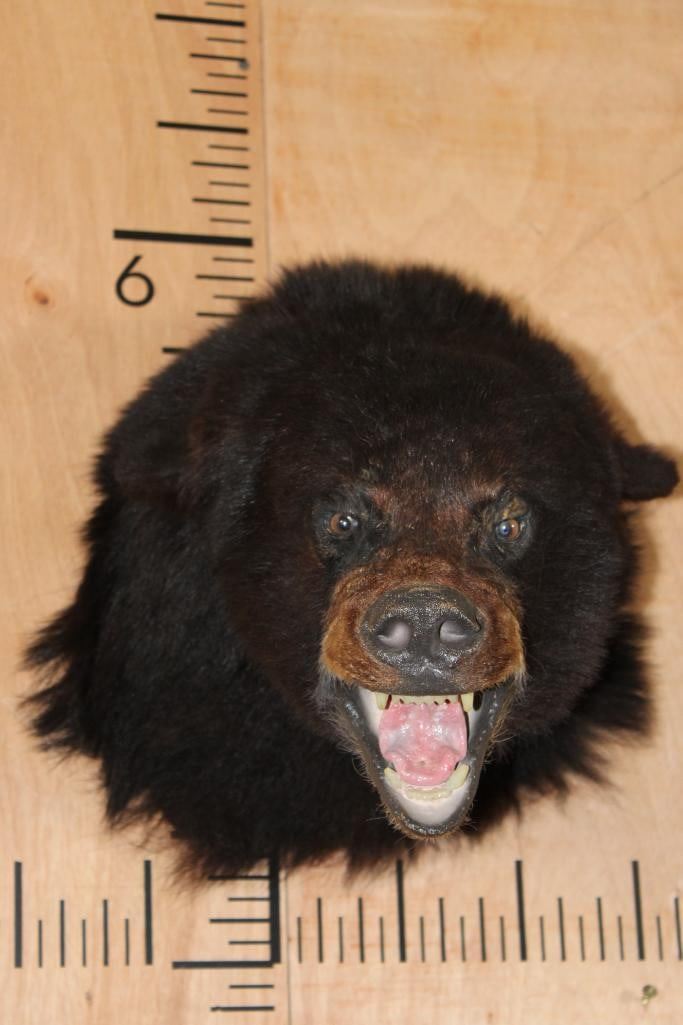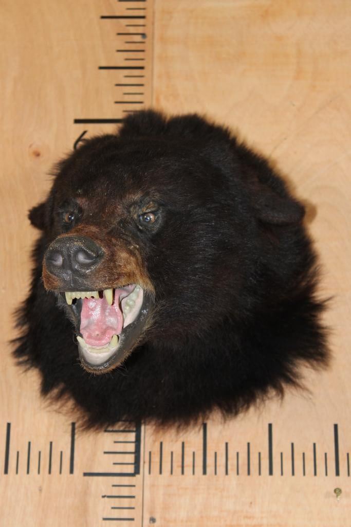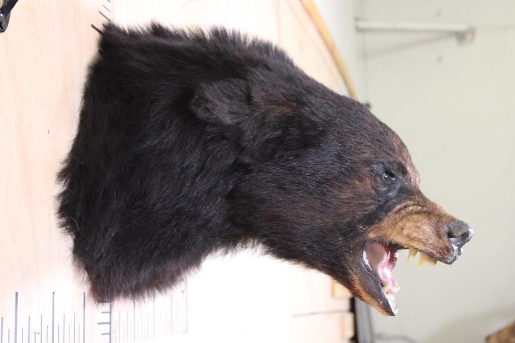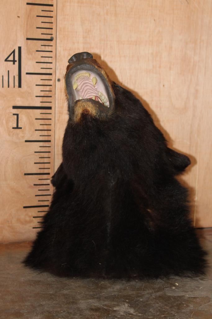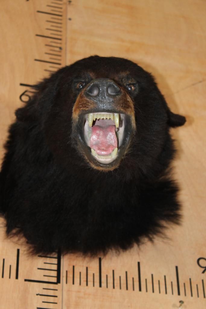Nice Older BLACK BEAR Shoulder Mount. He is snarling with an open mouth! It measures 13" Tall x 12" Wide x 17" Depth (from the wall). TAXIDERMY