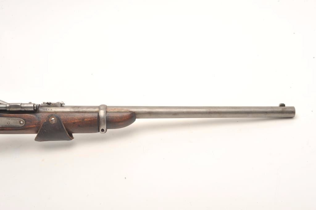 Snyder Enfield 1870 British carbine, .58 caliber, 19” barrel, wood half stock, brass trigger guard and butt plate, S/N A268, in overall good condition with grey patina to metal surfaces, good bore, crisp action, good markings including many proofs and good wood displaying proof on right side of butt stock. (Antique). Est.: $300-$600.