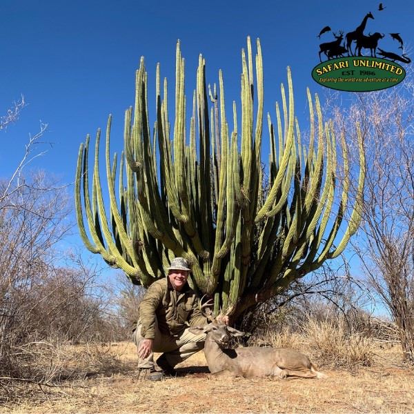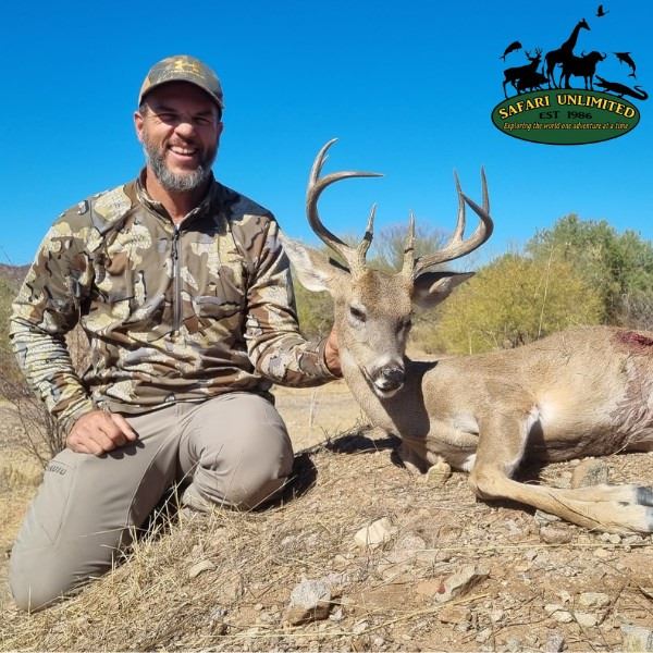 Grab a friend and head to Sonora for world class Coues Deer hunting for two people with Safari Unlimited. This 4 day/5 night trip for two is available for December-February 2026 or 2027. You will hunt a small but beautiful sub-species of whitetail deer (Coues deer) 2 hours SW of Hermosillo. Enjoy your Vaquero, Mexican Cowboy, style camp nestled in the Sonoran Desert with vistas right out of a movie set around every corner. You will be hunting African style over water holes full of life. Expect to see dozens of Coues deer during the hunt. This style of Coues deer hunting results in a near 100% success rate. You will be enjoying your chef prepared meals & the golden rolling vistas of the landscape. This hunt includes lodging, meals and beverages, professional guides, field prep, and airport pickup and 2 hour transfer to hunting camp. Not included are: RT flights to Hermosillo, Sonora Mexico, tips to guides and staff, license fee ($400/hunter for the deer tag), gun rental fee if needed ($350/hunter), and the taxidermy/packing and shipping. Cost per additional hunter: $6,500